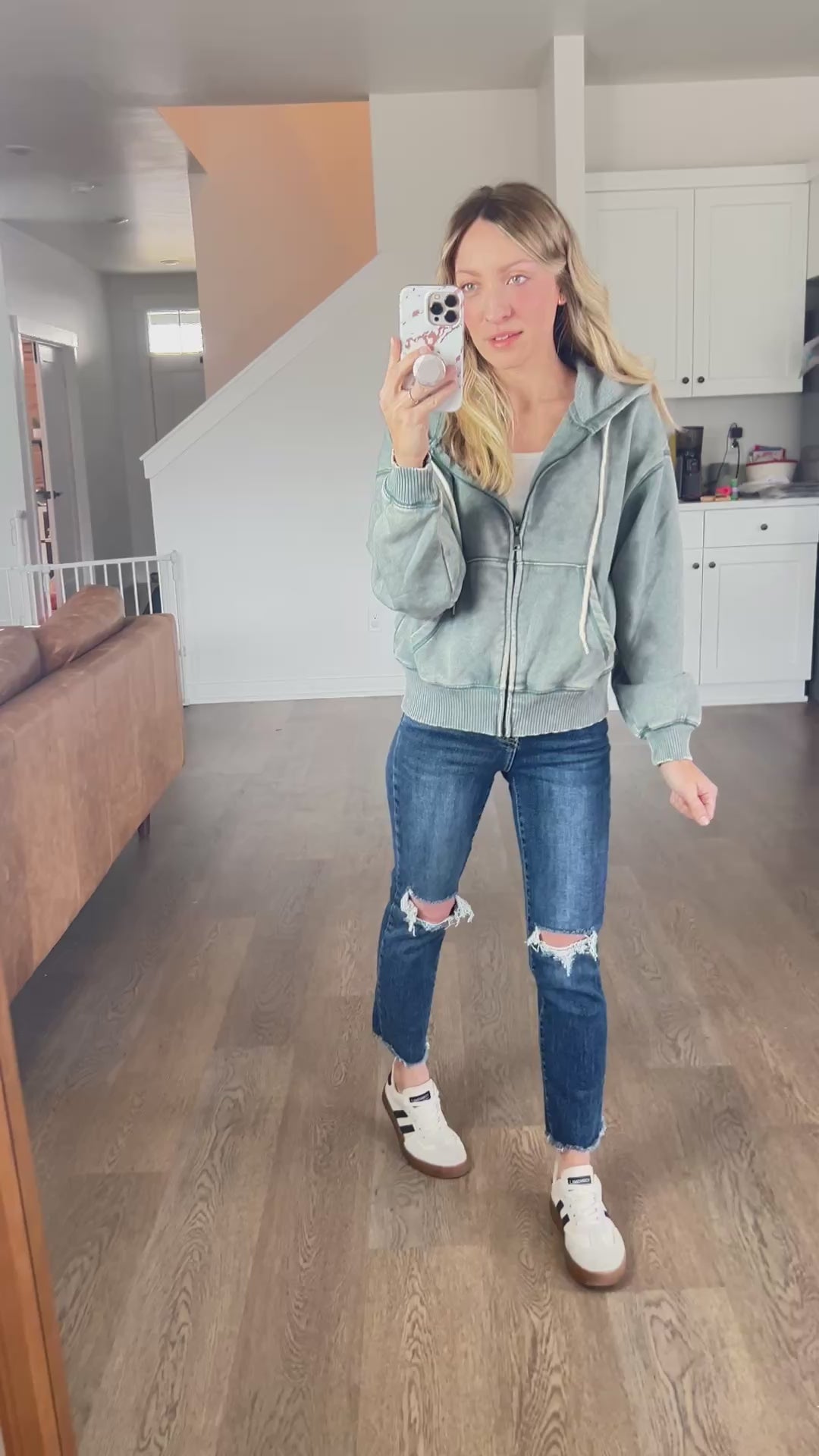 With a fleece lined inside and vintage wash, you’ll wear this all the time! True to size.