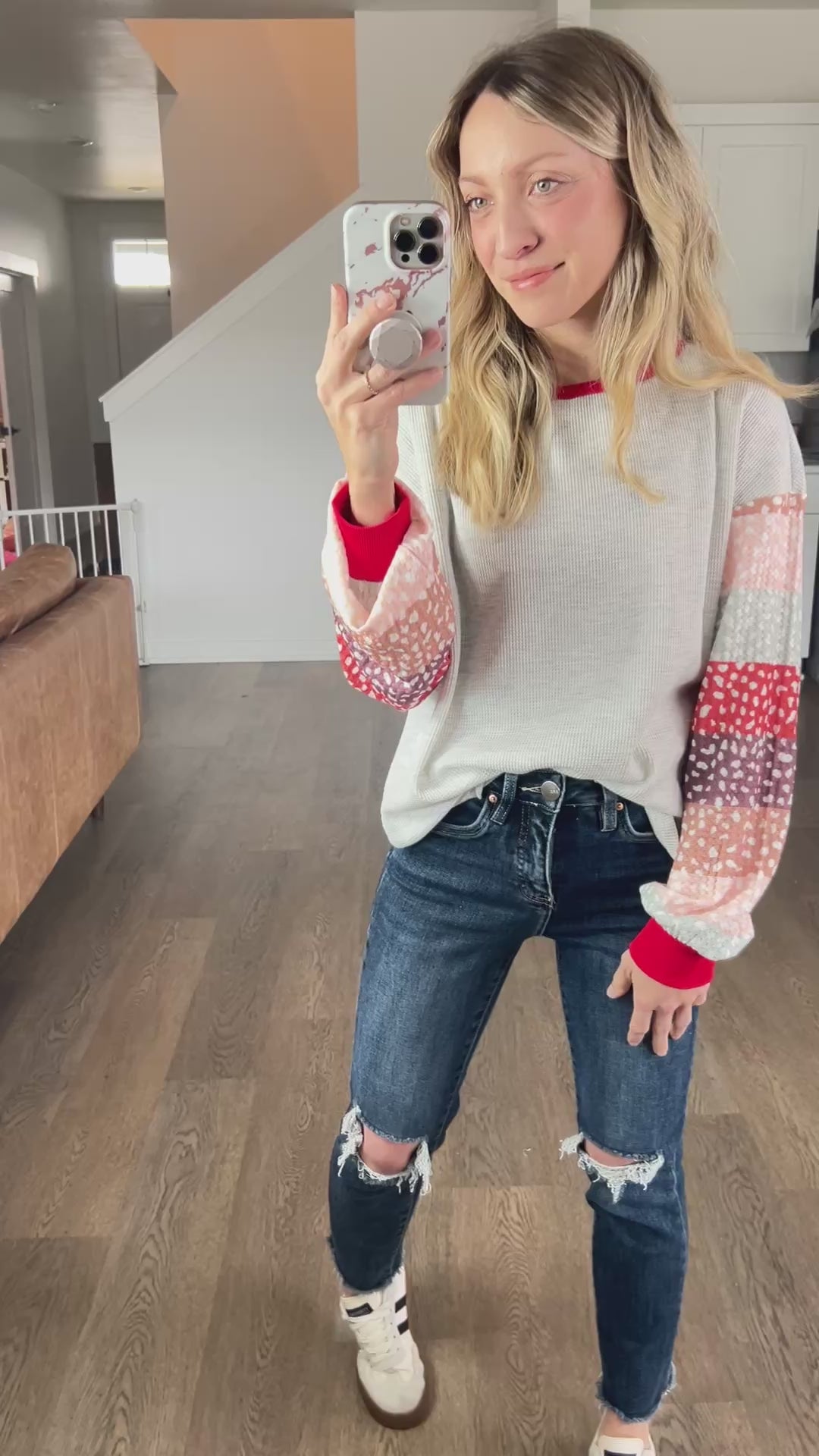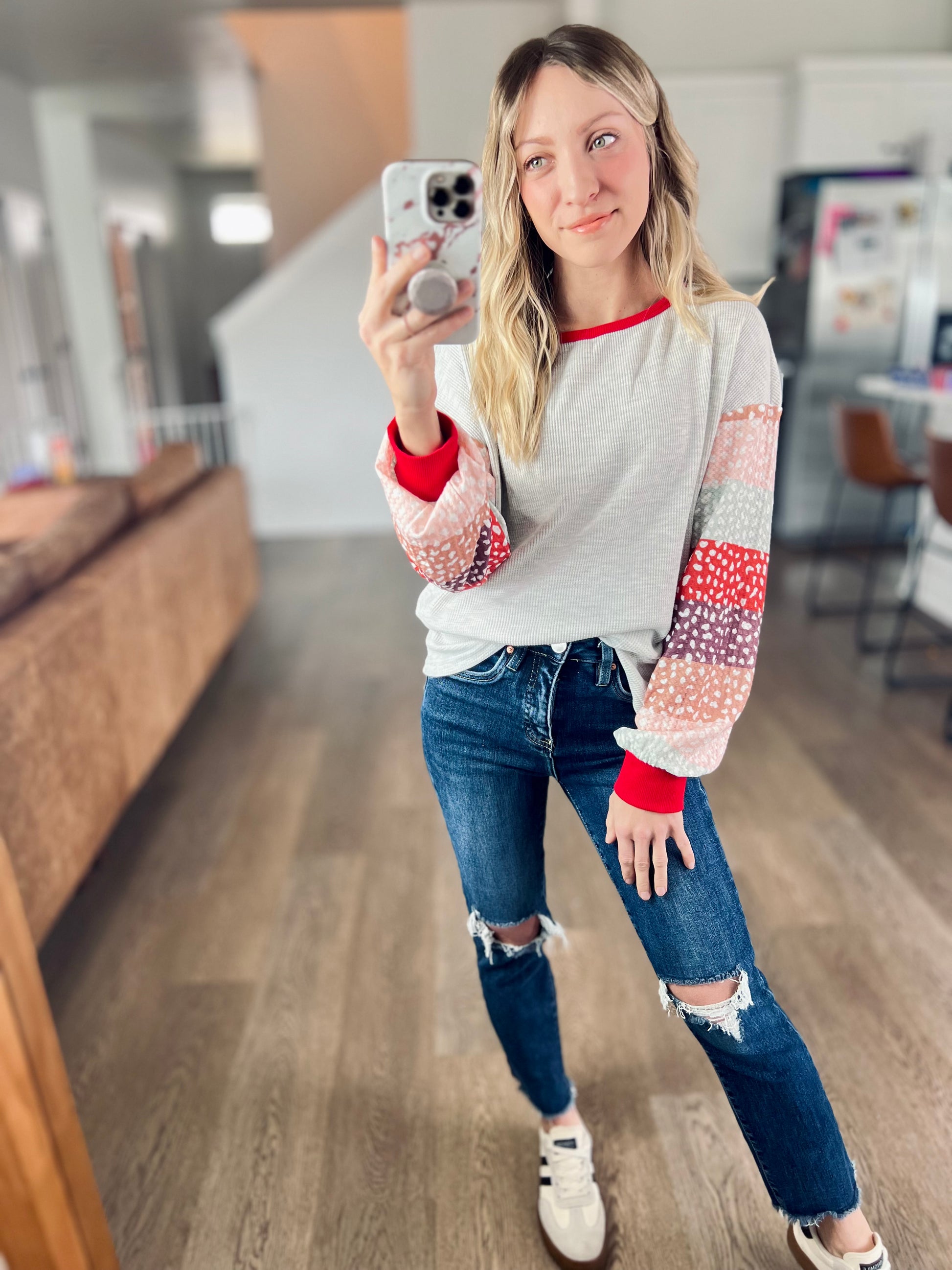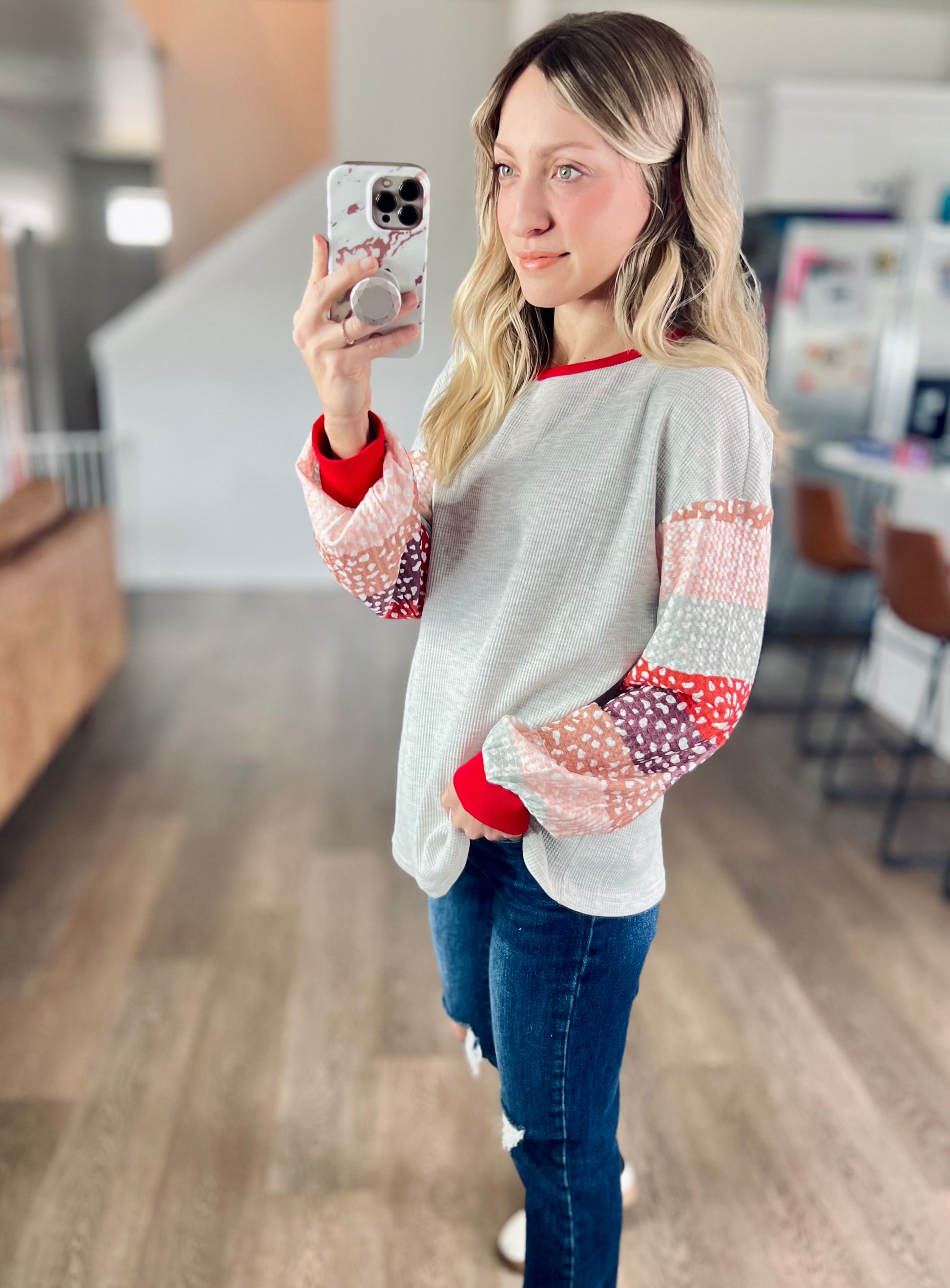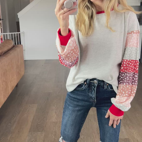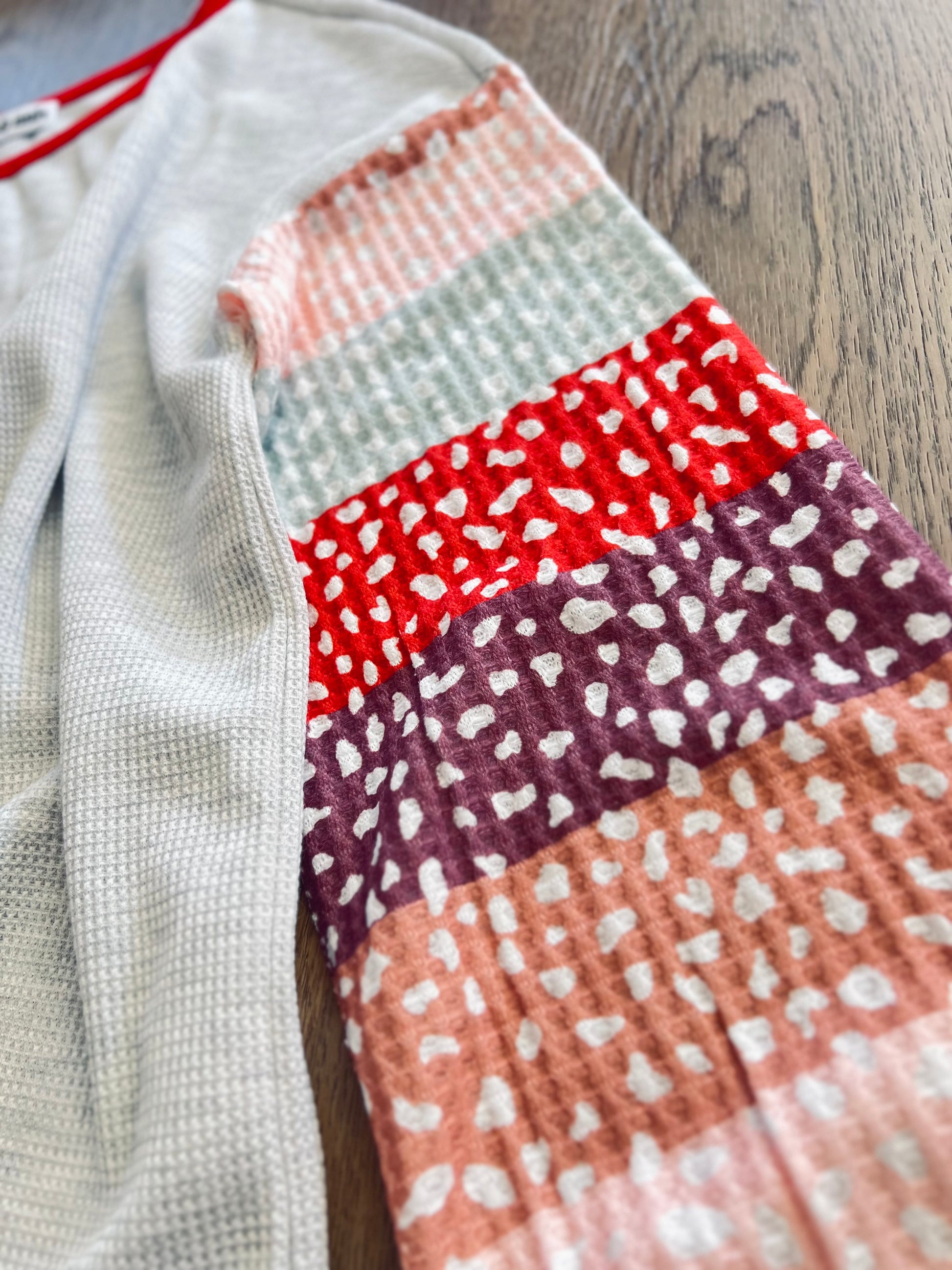 I love the pop of red and the various sleeve colors. Something to add some flair into your wardrobe!