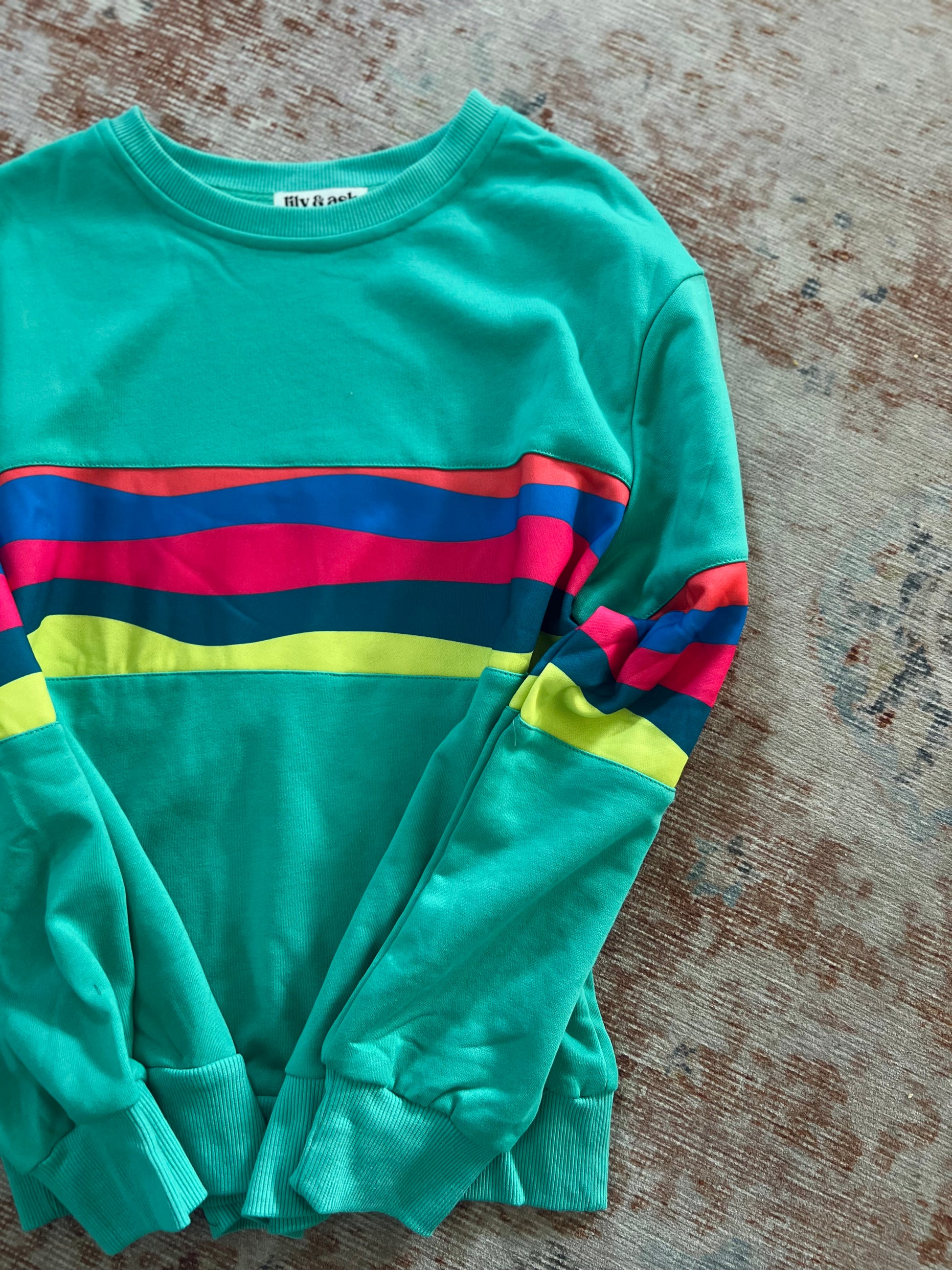 This pullover is adorable! Such fun colors! It's a french terry material, medium weight, and perfect for wearing any time of the year.