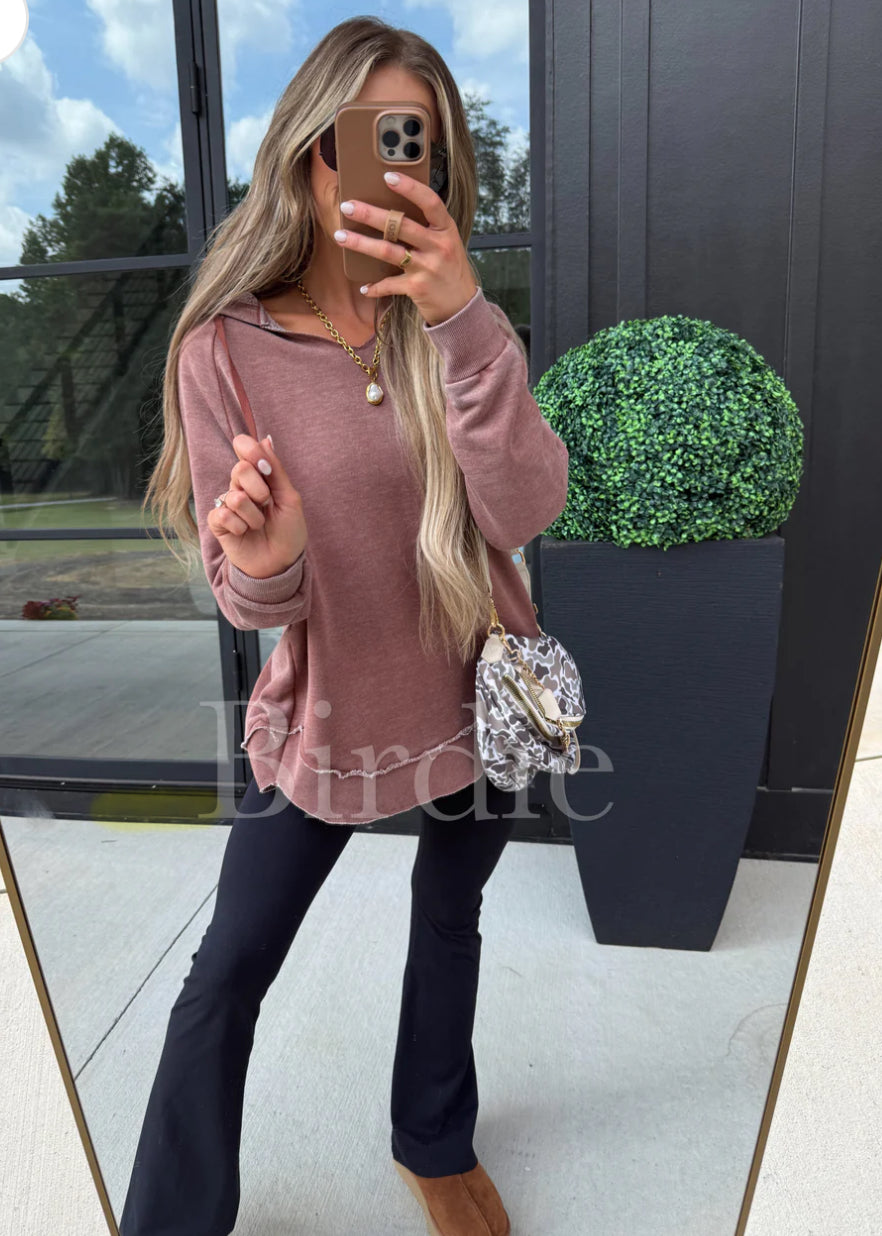 PREORDER: Curved Hem Hoodie in Washed Brown // eta Jan