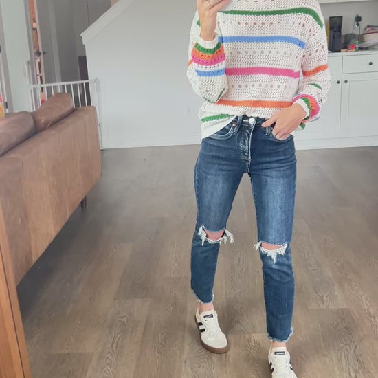 *free ship today* Happy Days Stripe Pointelle Sweater