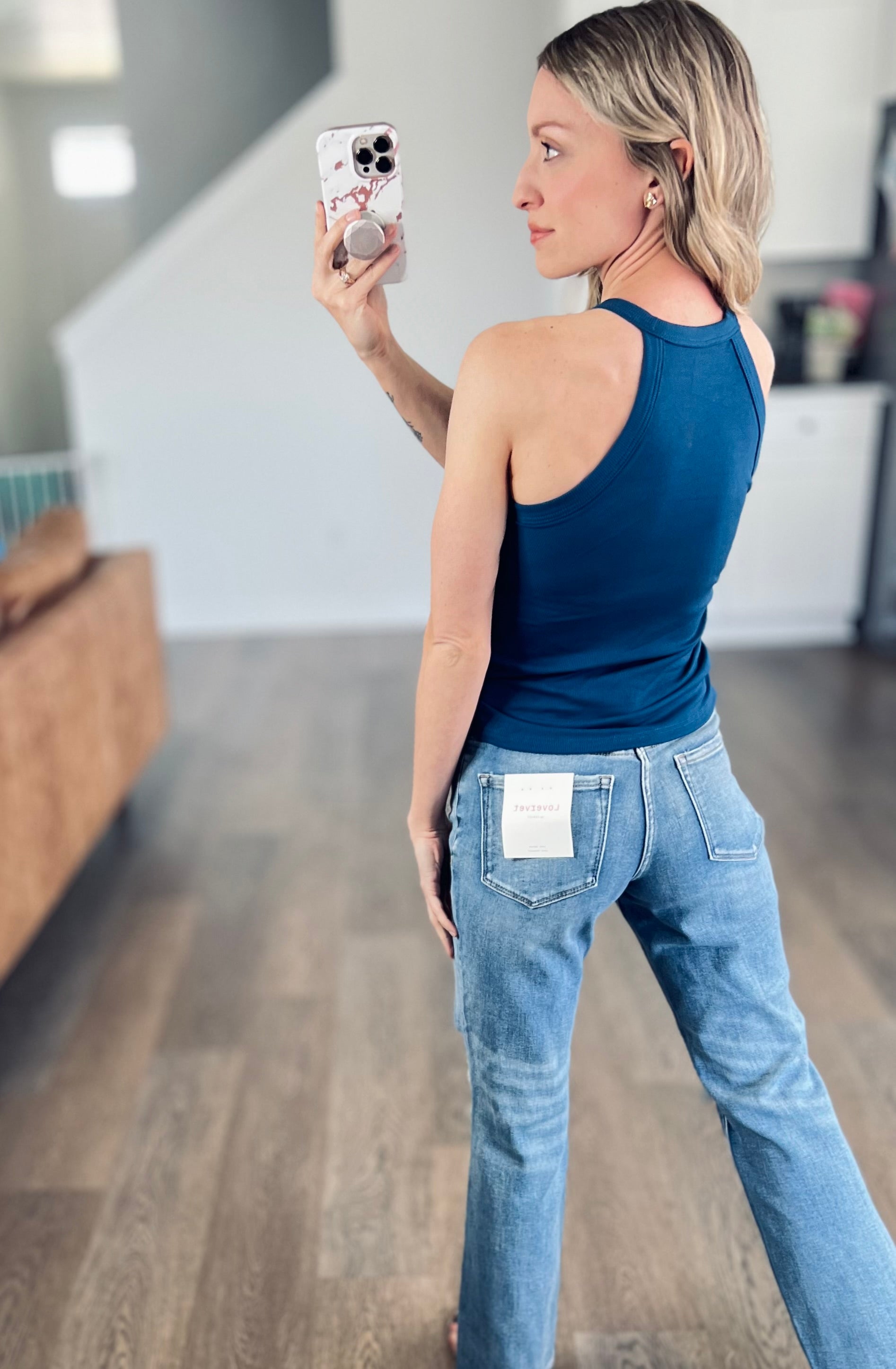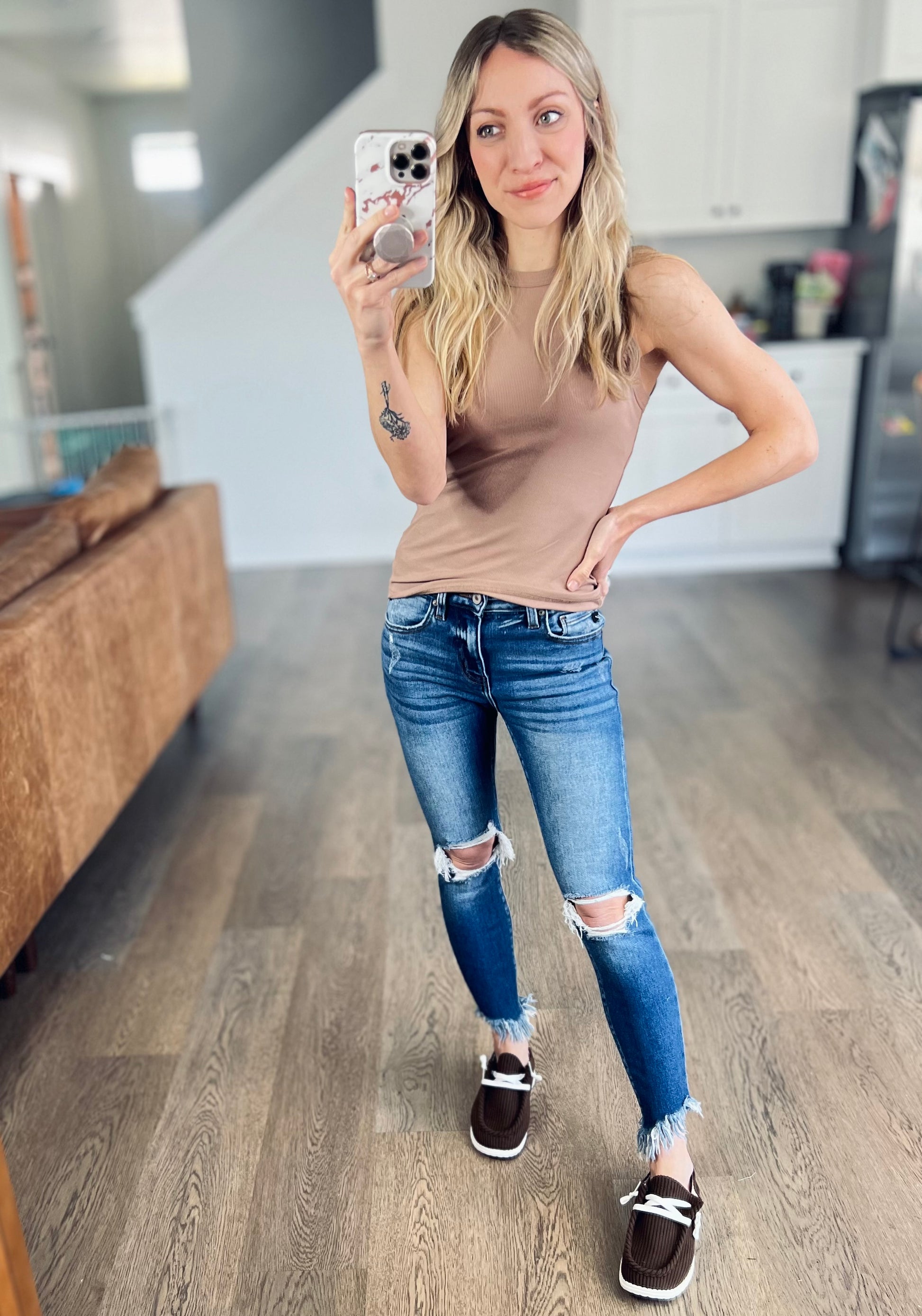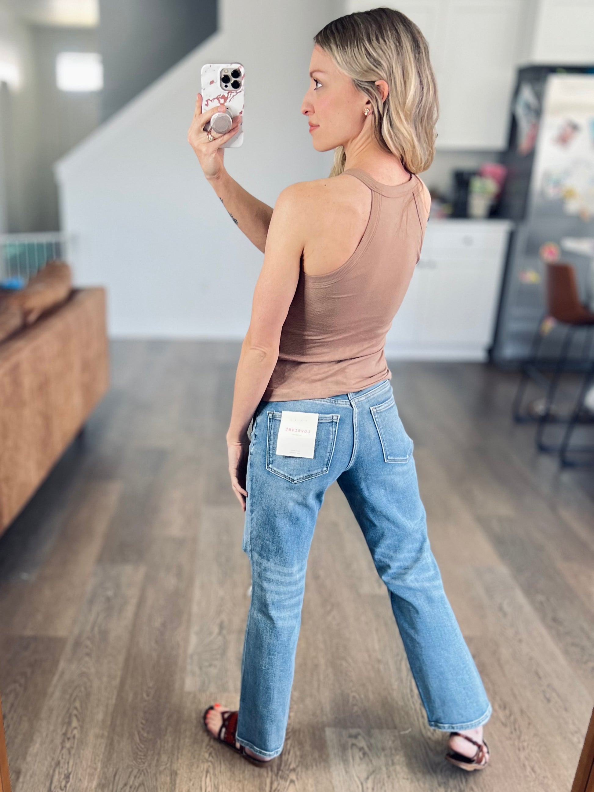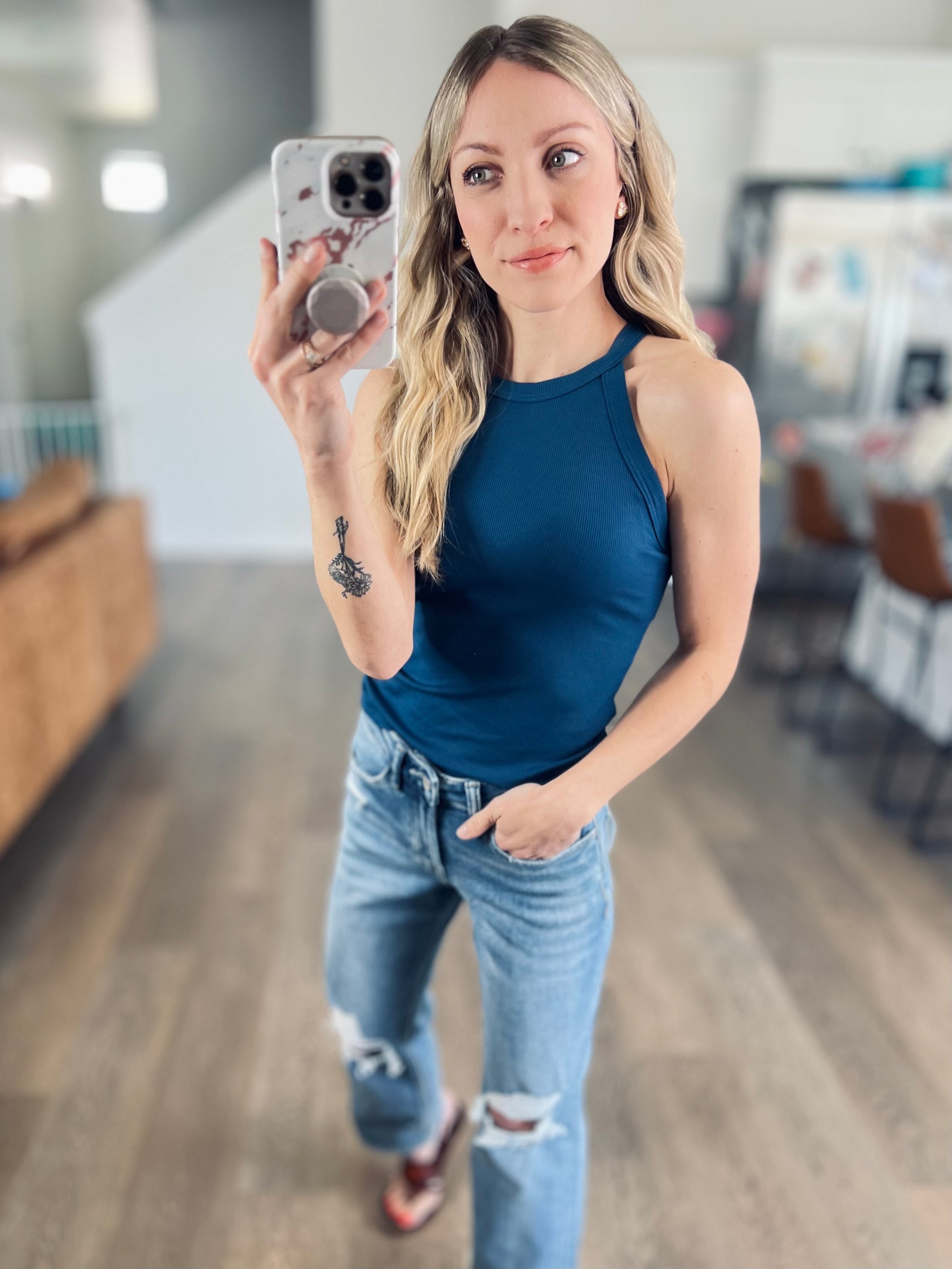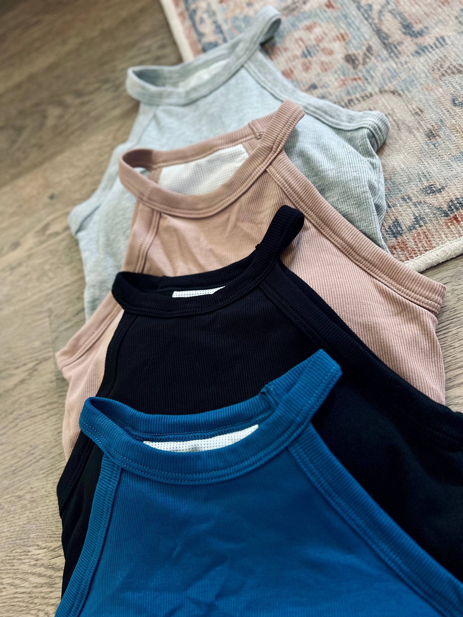 If you liked the original built bra tanks, you’ll love this new style too! Super soft and stretchy micro rib material. Built in bra (with sewn in pads). Perfect for layering or just wearing on its own! I’d also wear it to lounge in.