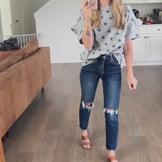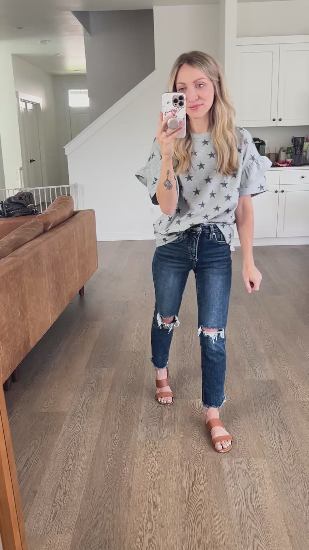 This stars top has fun details but also has neutral colors that make me love it even more! Easy to wear all year long!