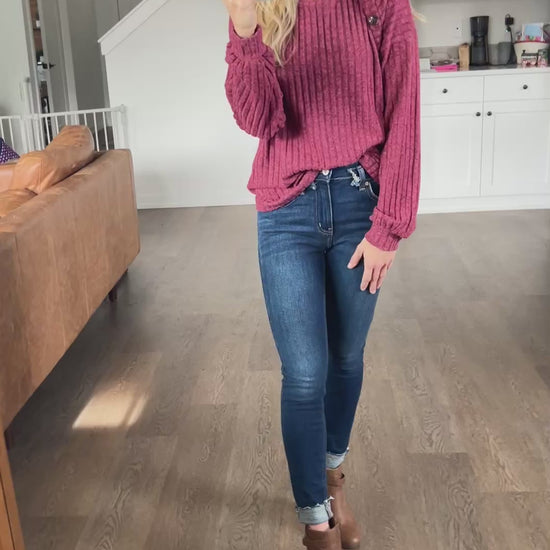 Mandy Decor Button Long Sleeve Ribbed T-Shirt