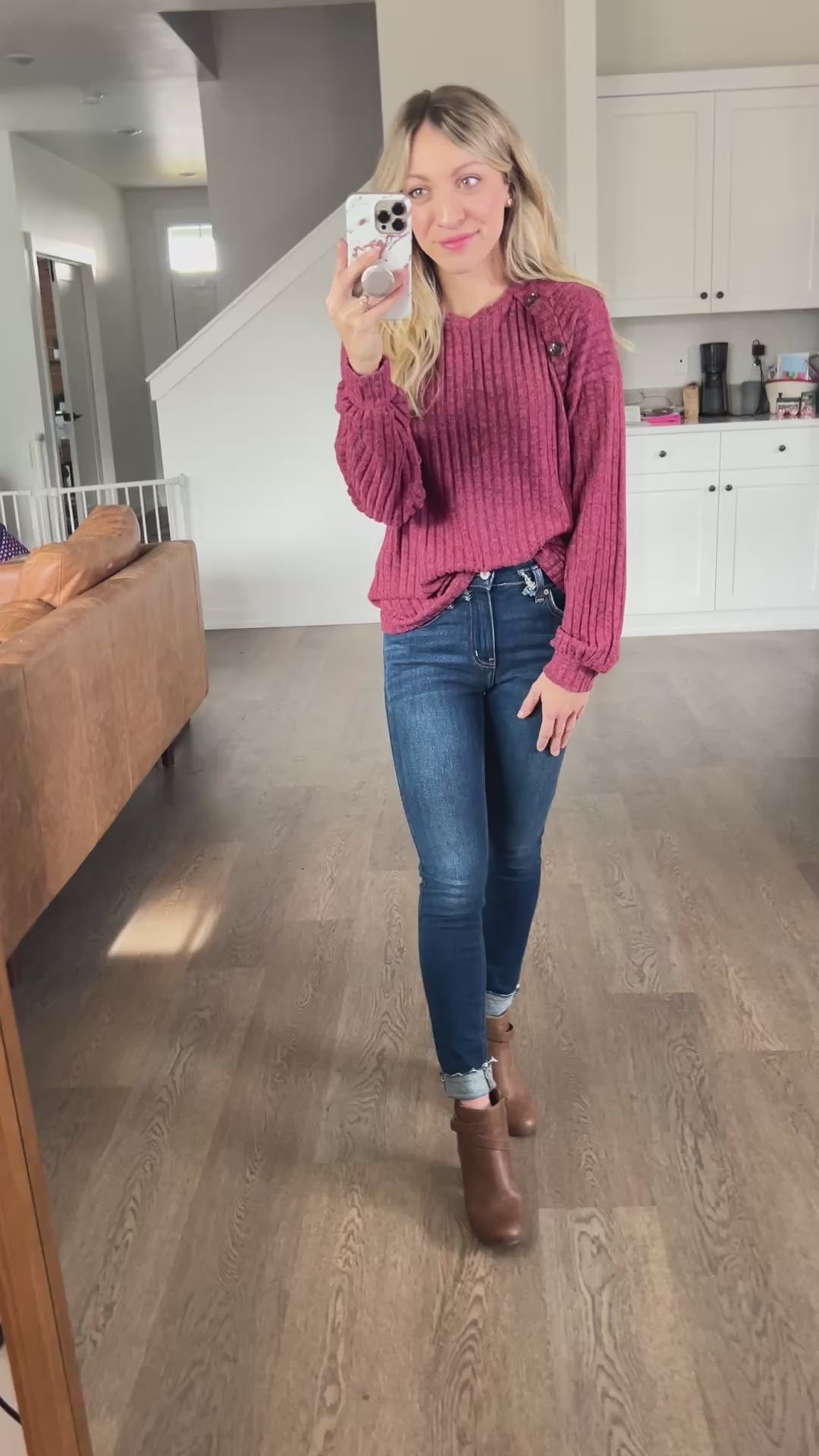 We love a button detail top! Soft feel, brushed hacci, stretch, always in style. Now, the tough part; to pick a color!