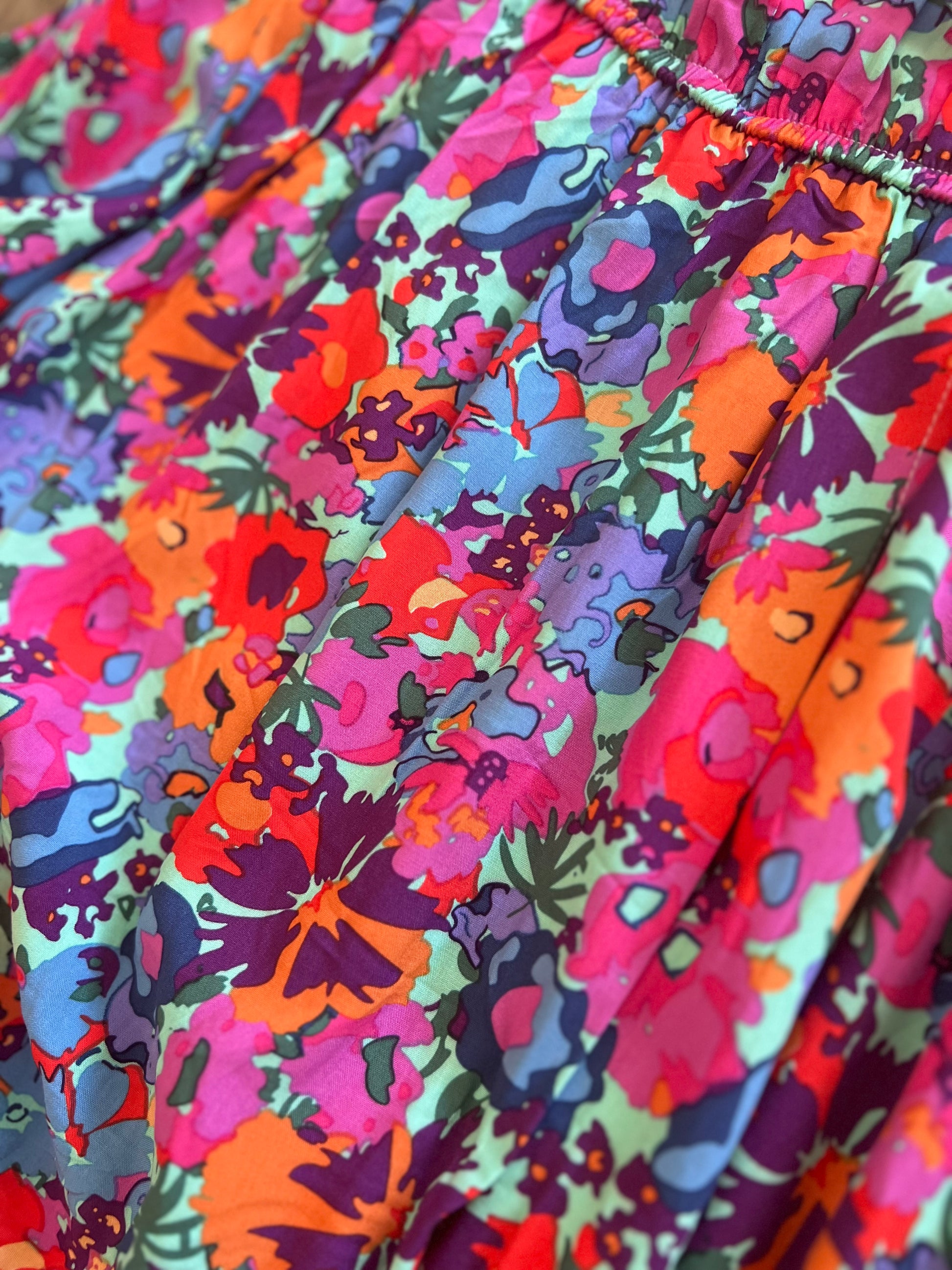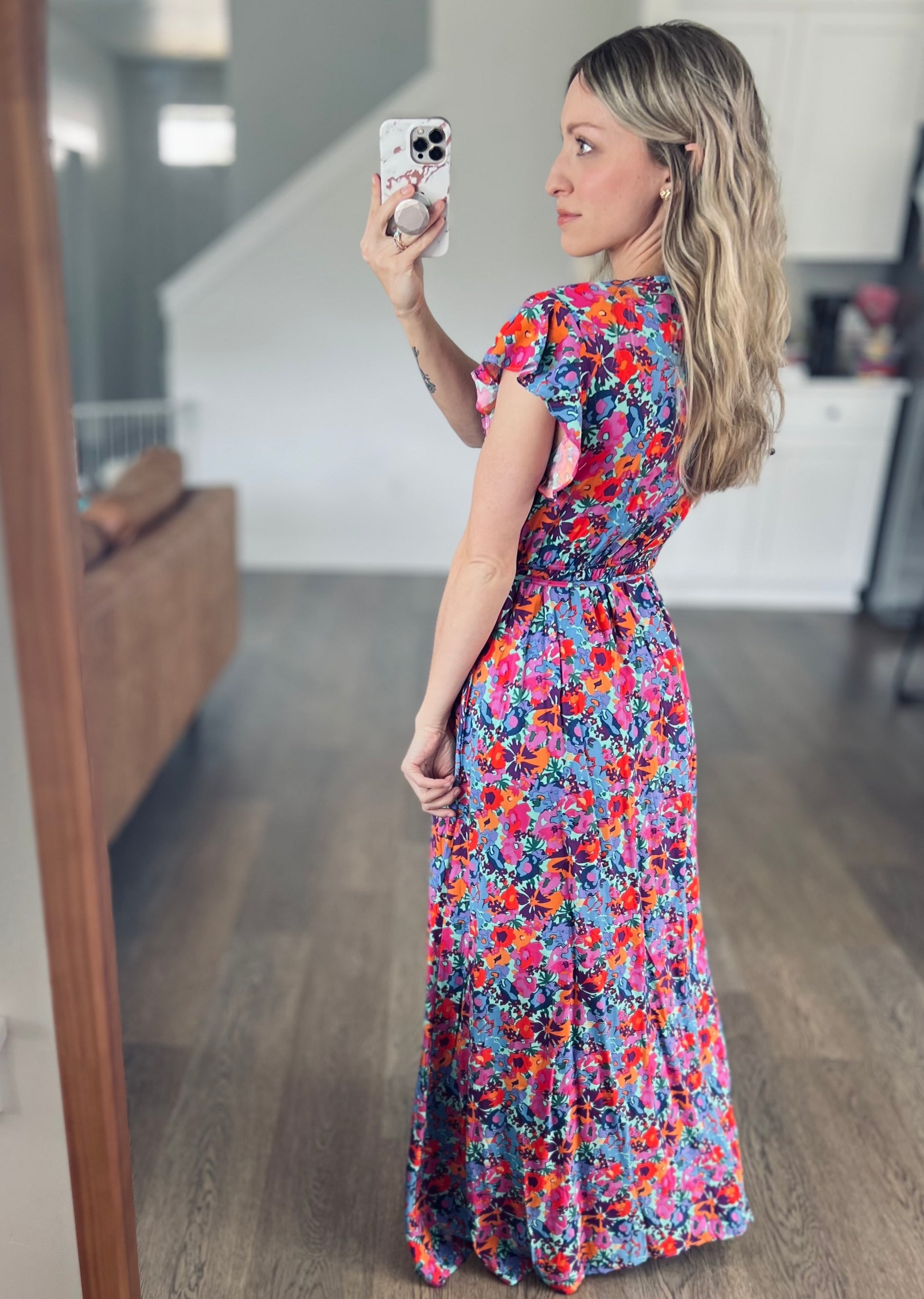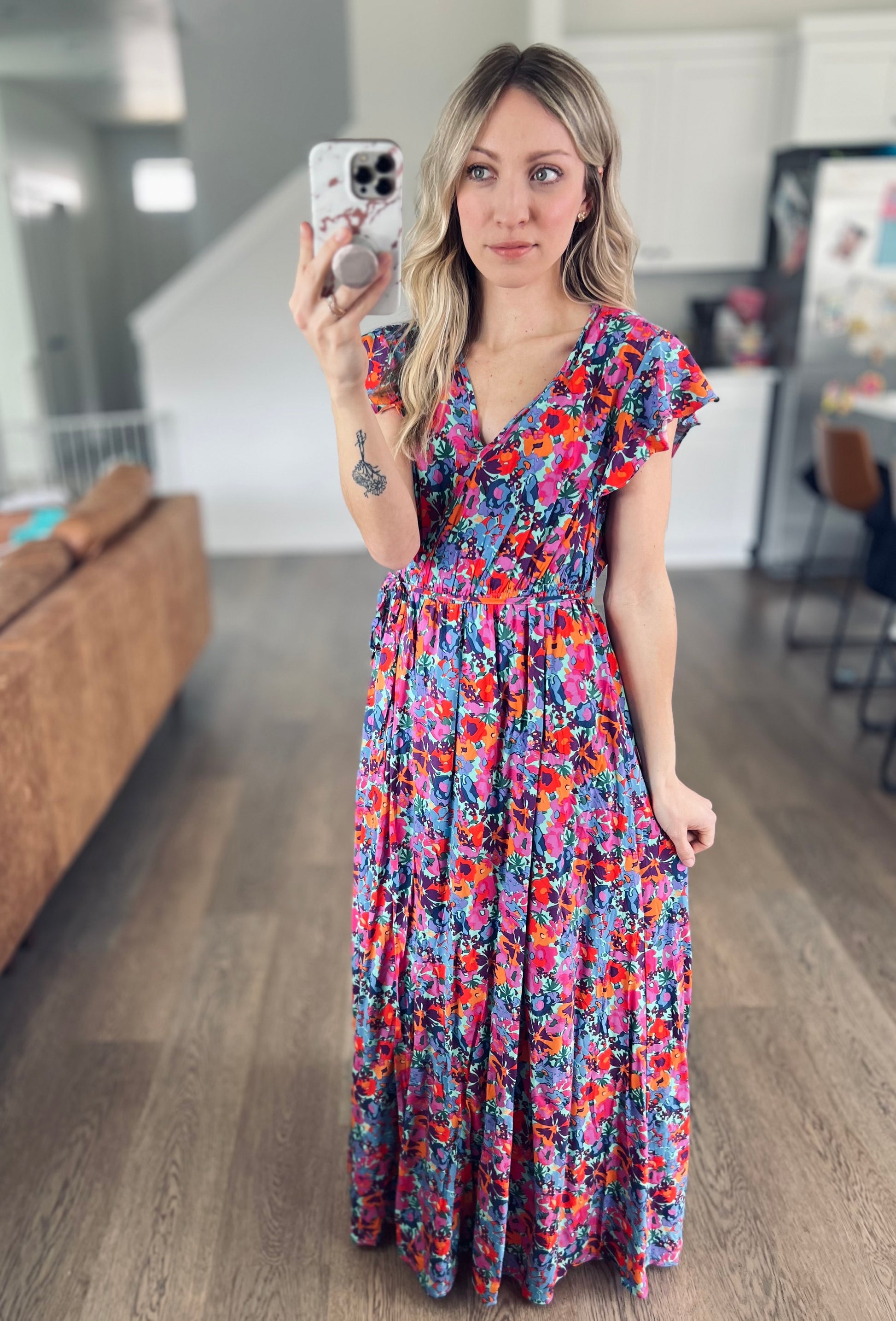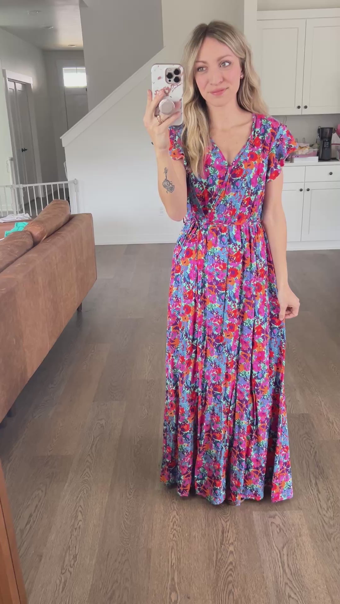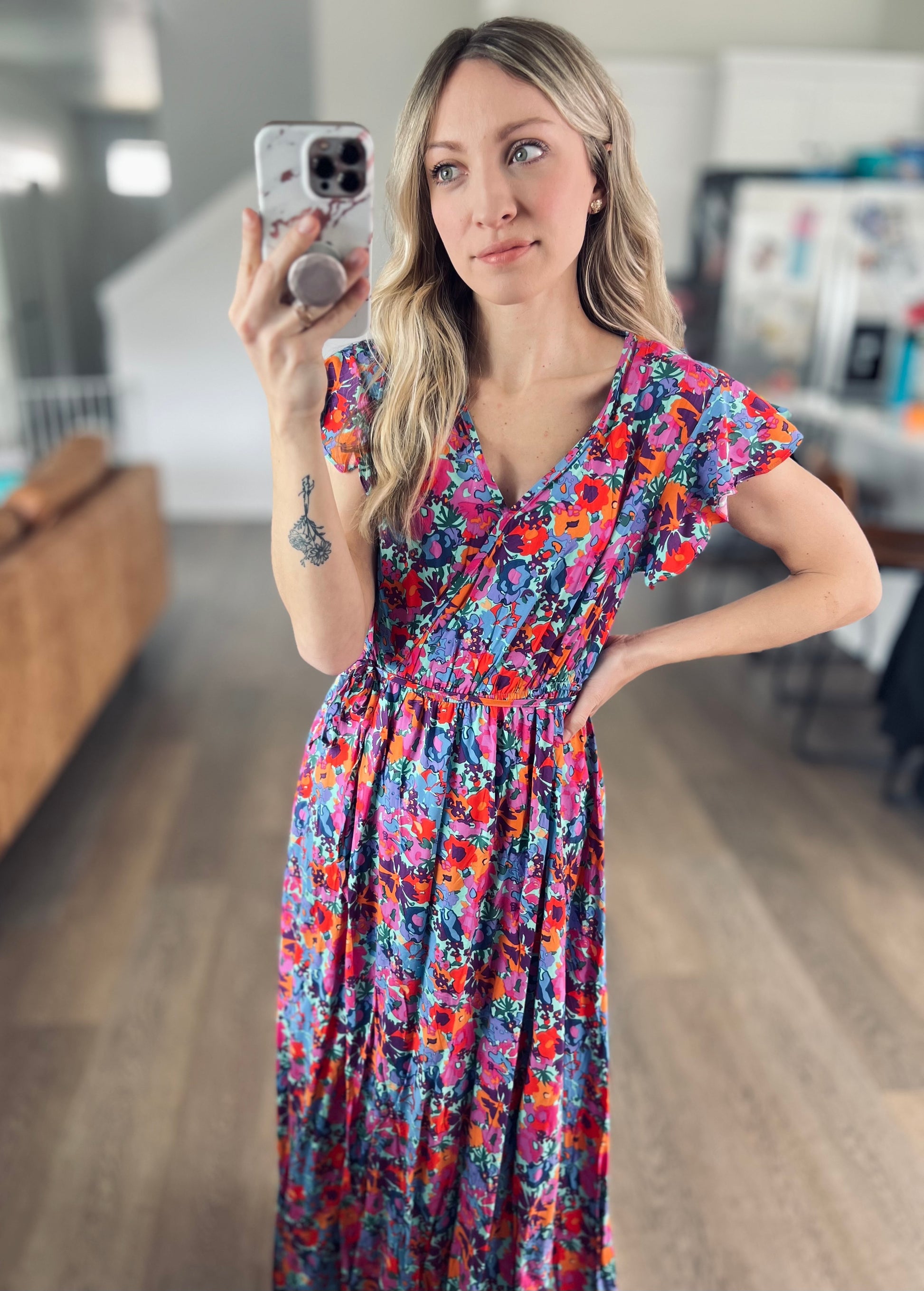 Never have I ever loved a print so much! The colors on this dress are perfect and it is such a flattering style! It features a v-neck front with button closure and elastic under the bust. It's a soft and lightweight material that flows just right.