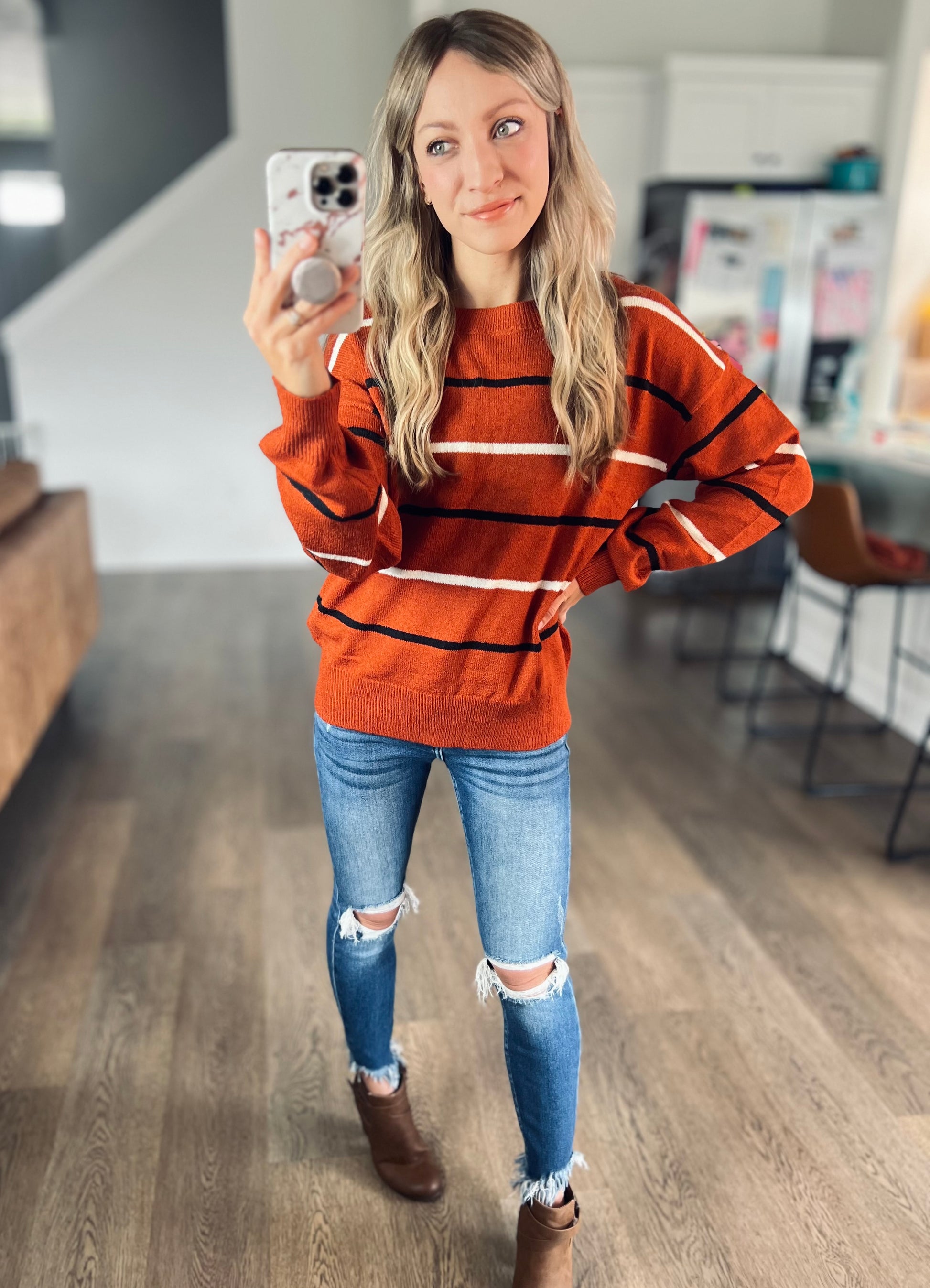 *free ship today* Mel Stripe Sweater in Toasted Pumpkin