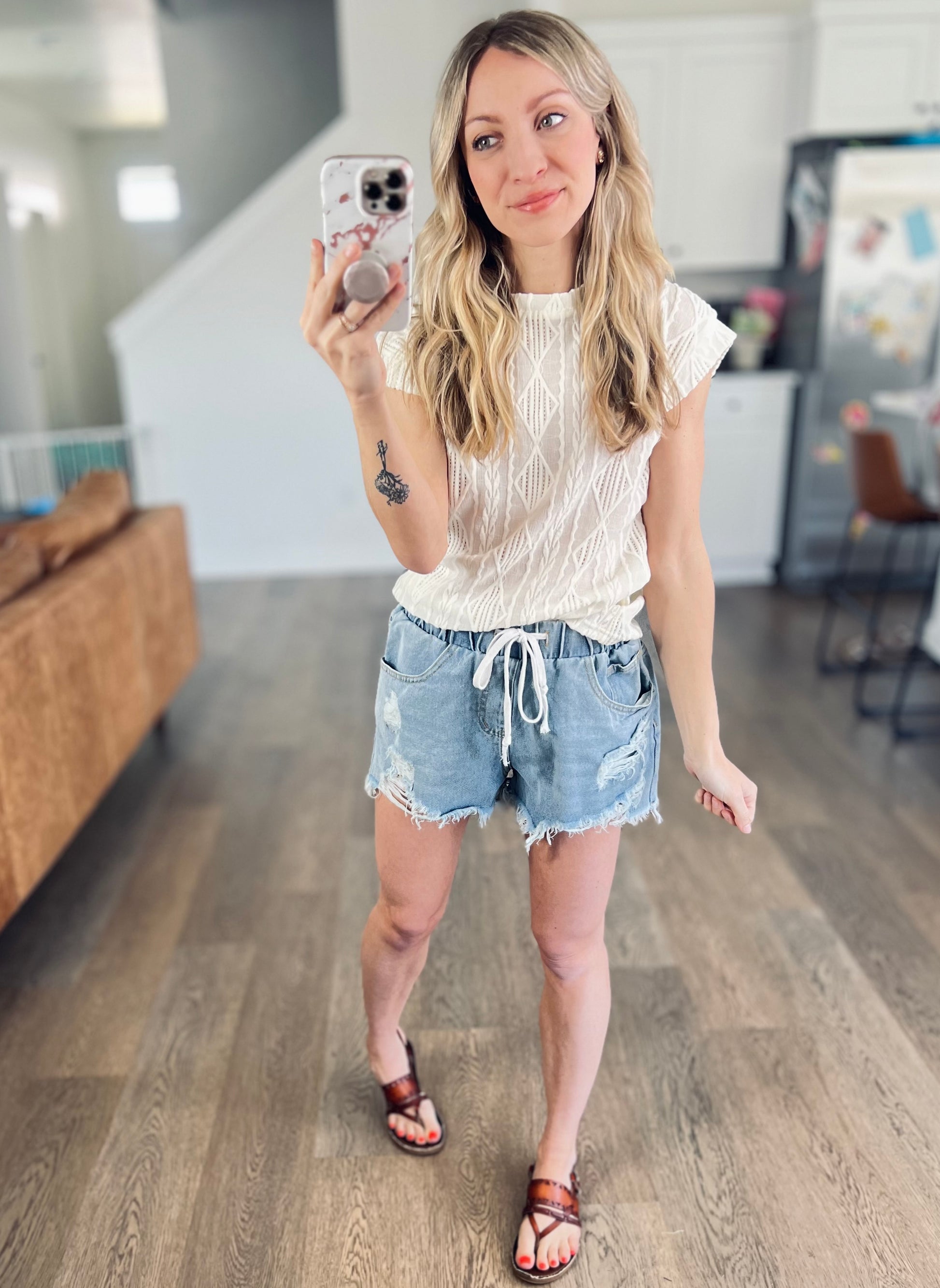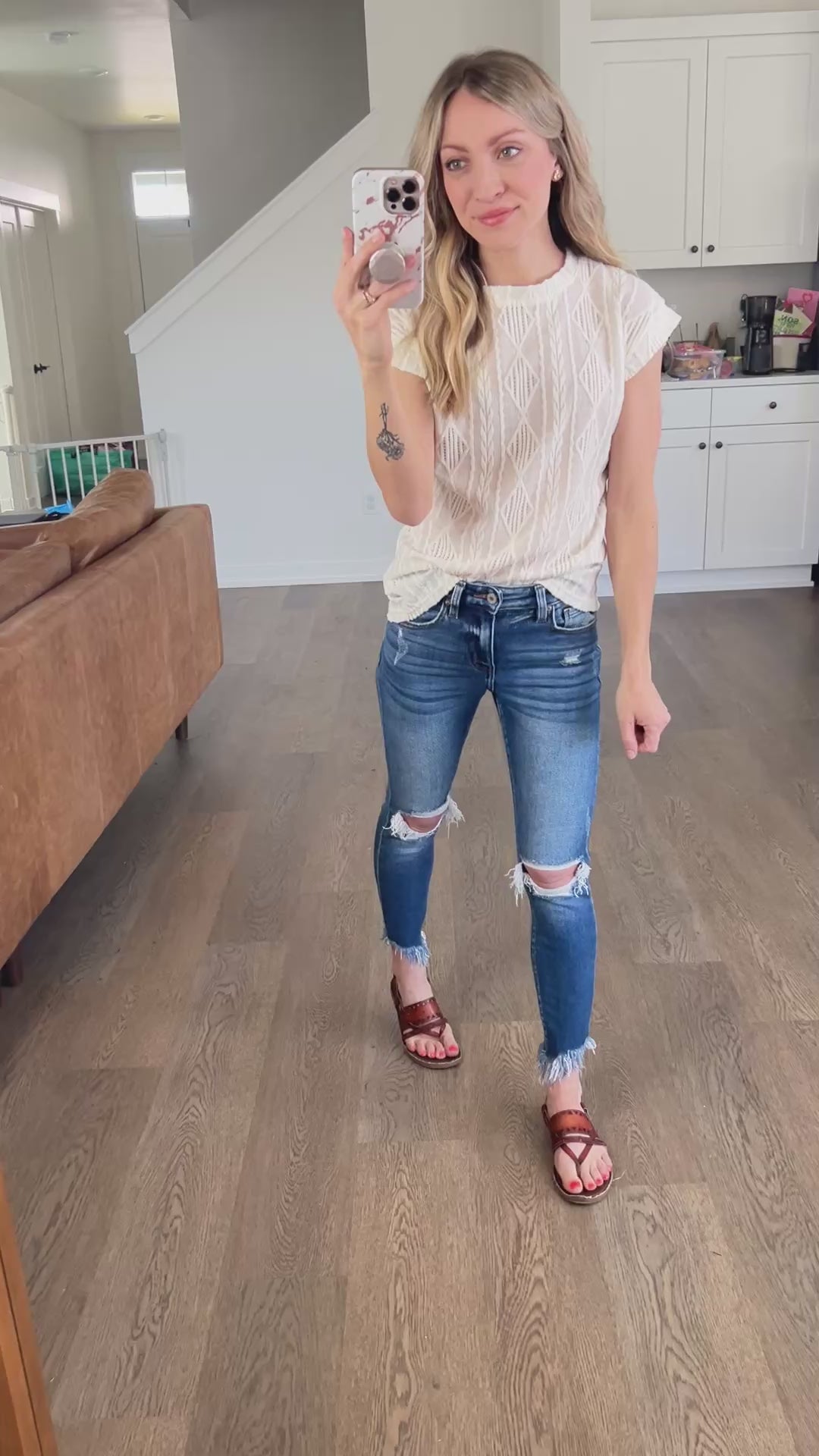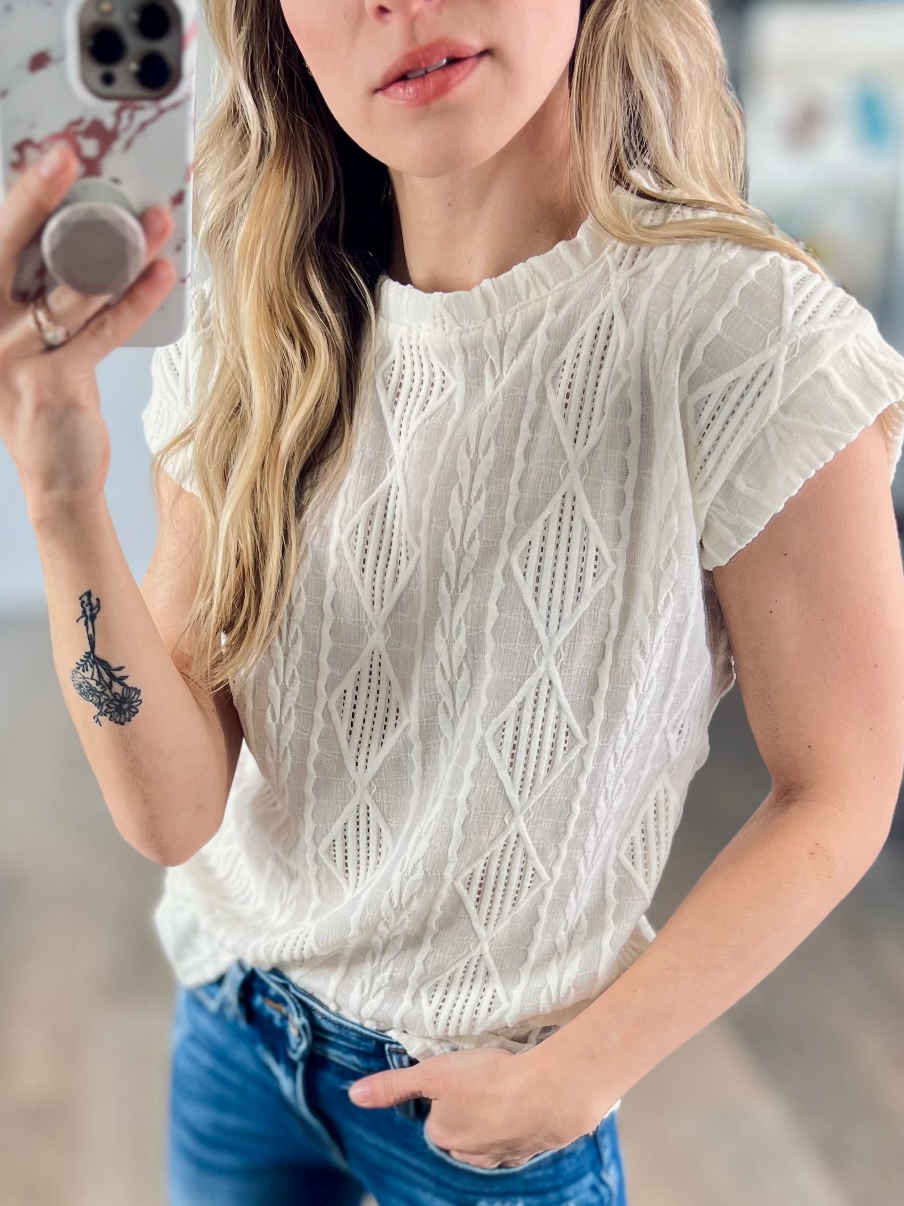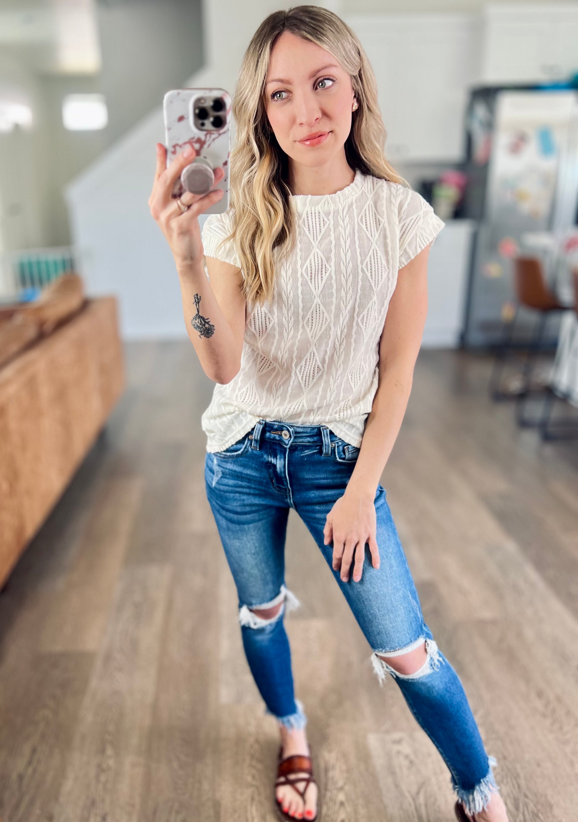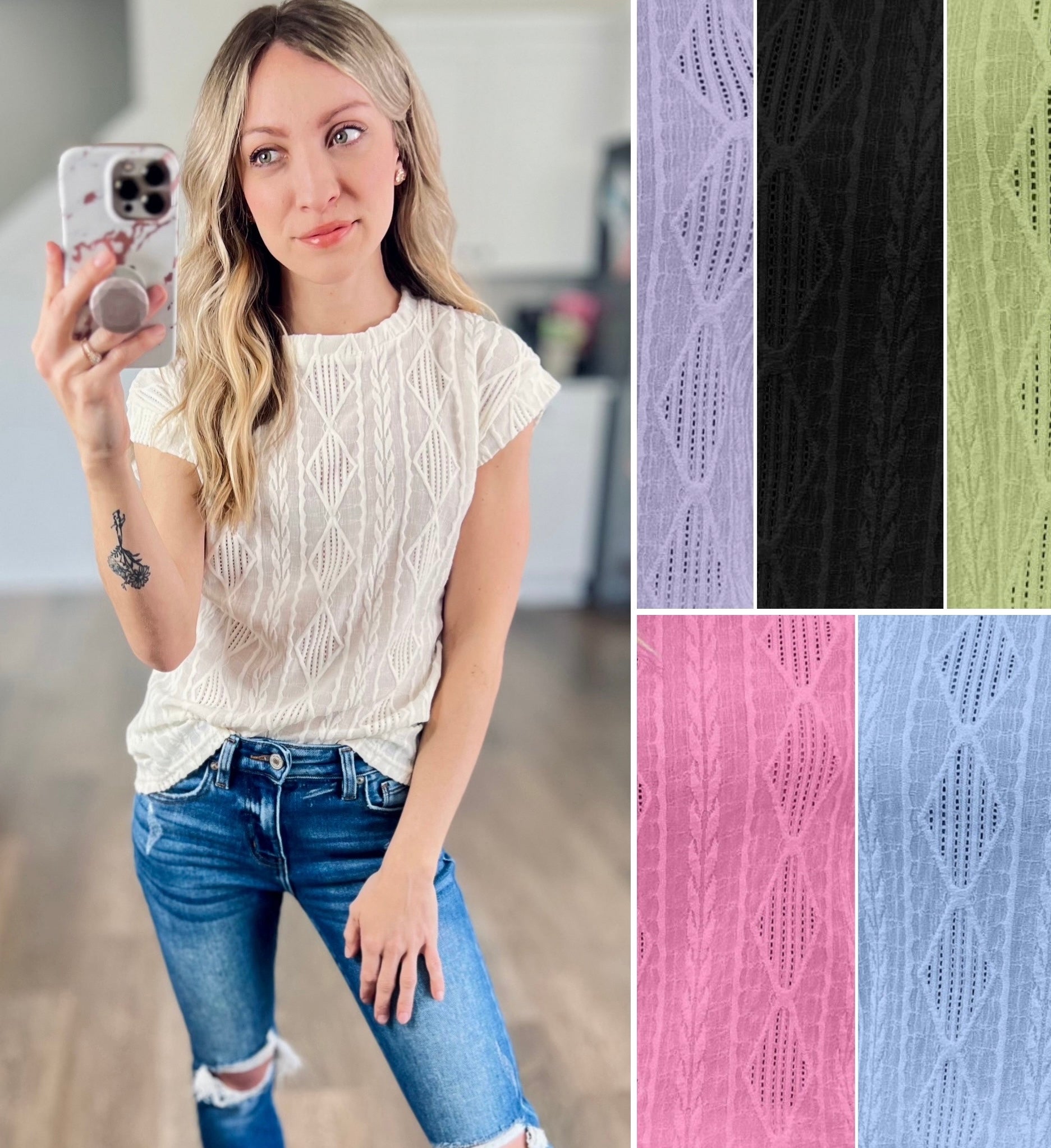 These details on this top are so pretty! It’s a textured material, easy to dress up or down with multiple colors to choose from.