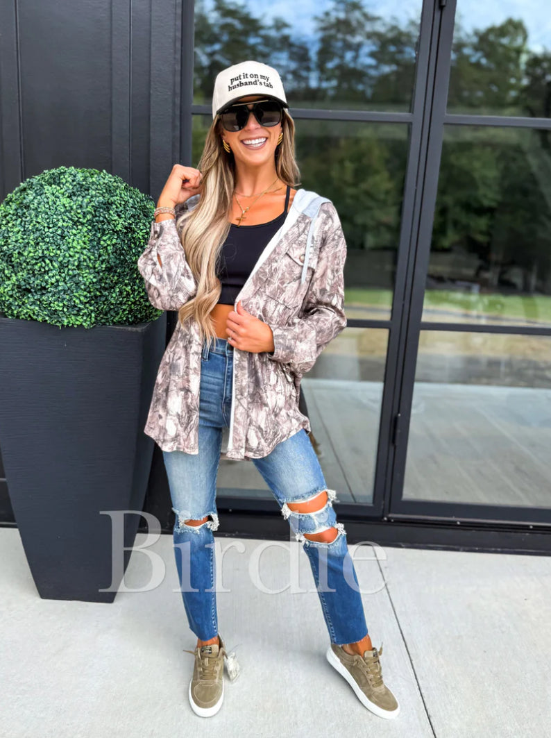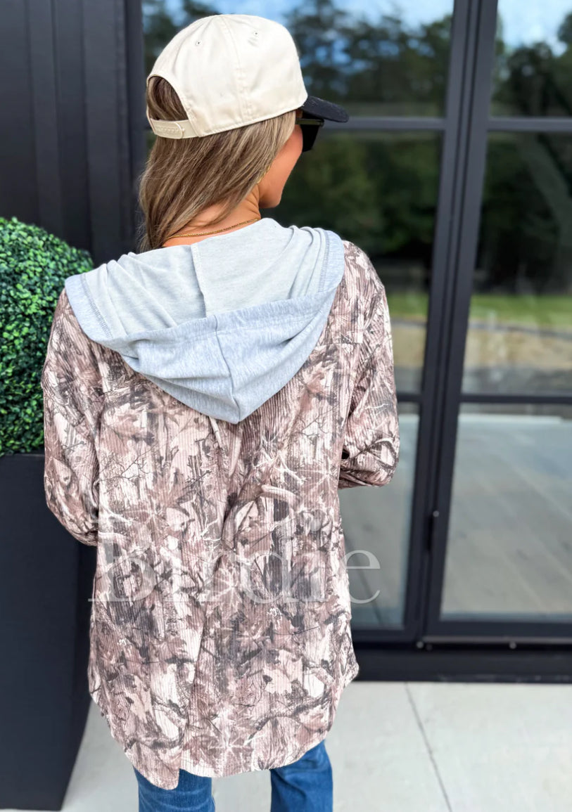 PREORDER: Dark Camo Hooded Ribbed Shacket //eta Dec
