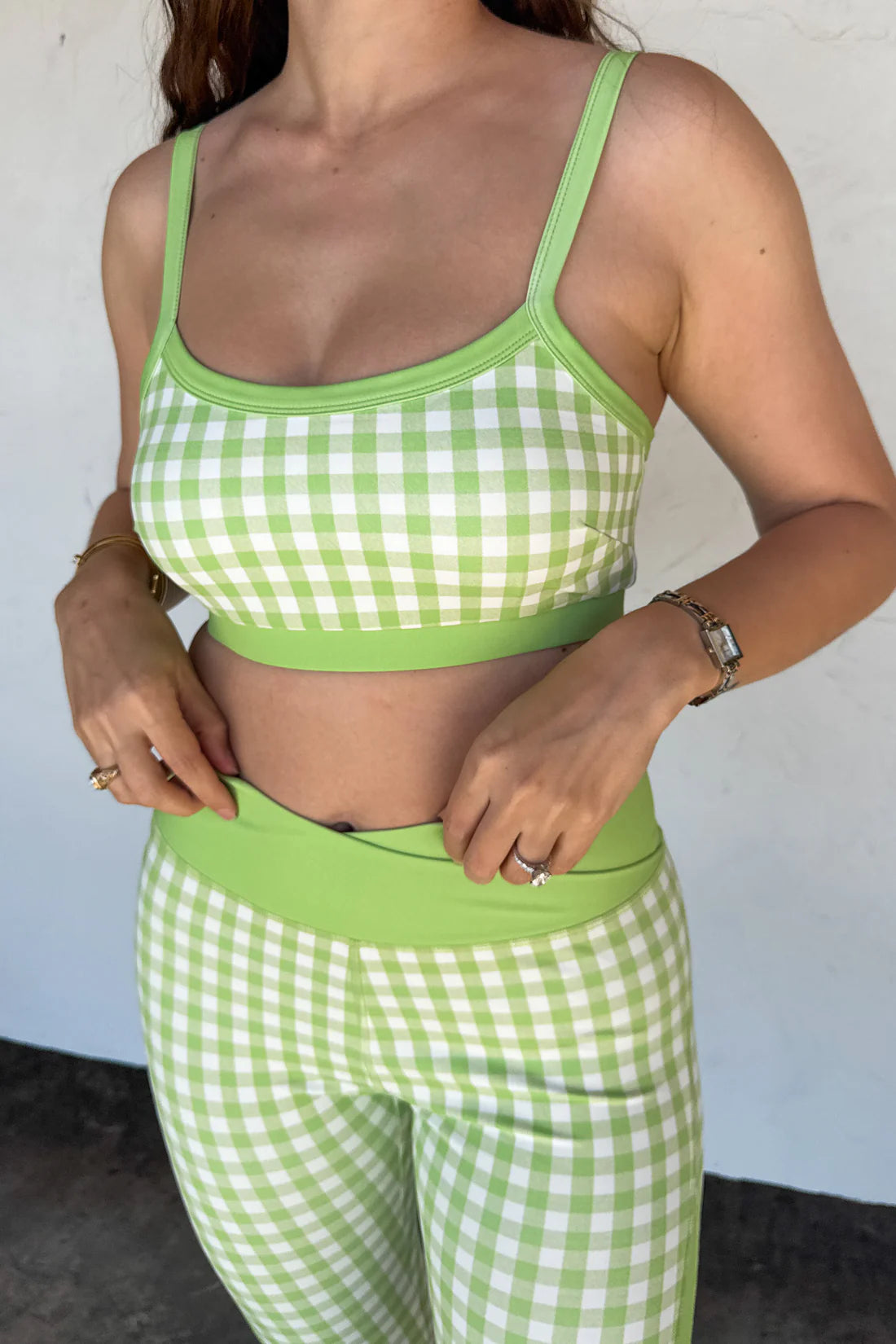 Introducing our ON THE GO LEGGINGS, the perfect addition to your spring and summer wardrobe. Crafted from premium stretchy spandex, these leggings offer exceptional flexibility and comfort for all-day wear. Waistline features a flattering criss-cross front waist band with contrast color side panel.