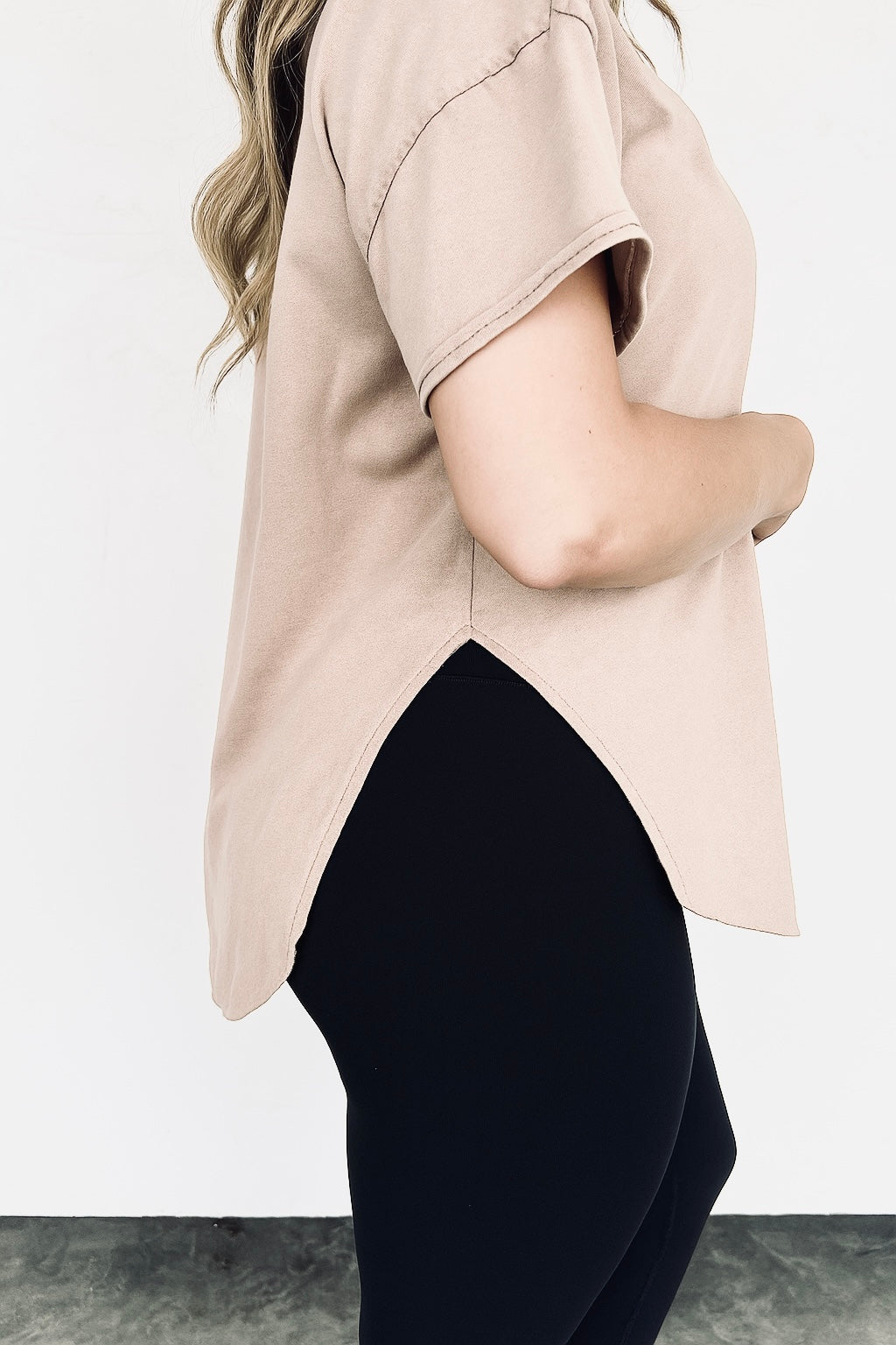 Yay for a V-neck! The perfect washed, super soft boyfriend tee that everyone needs! Features flattering rounded front and back hem with side slits!