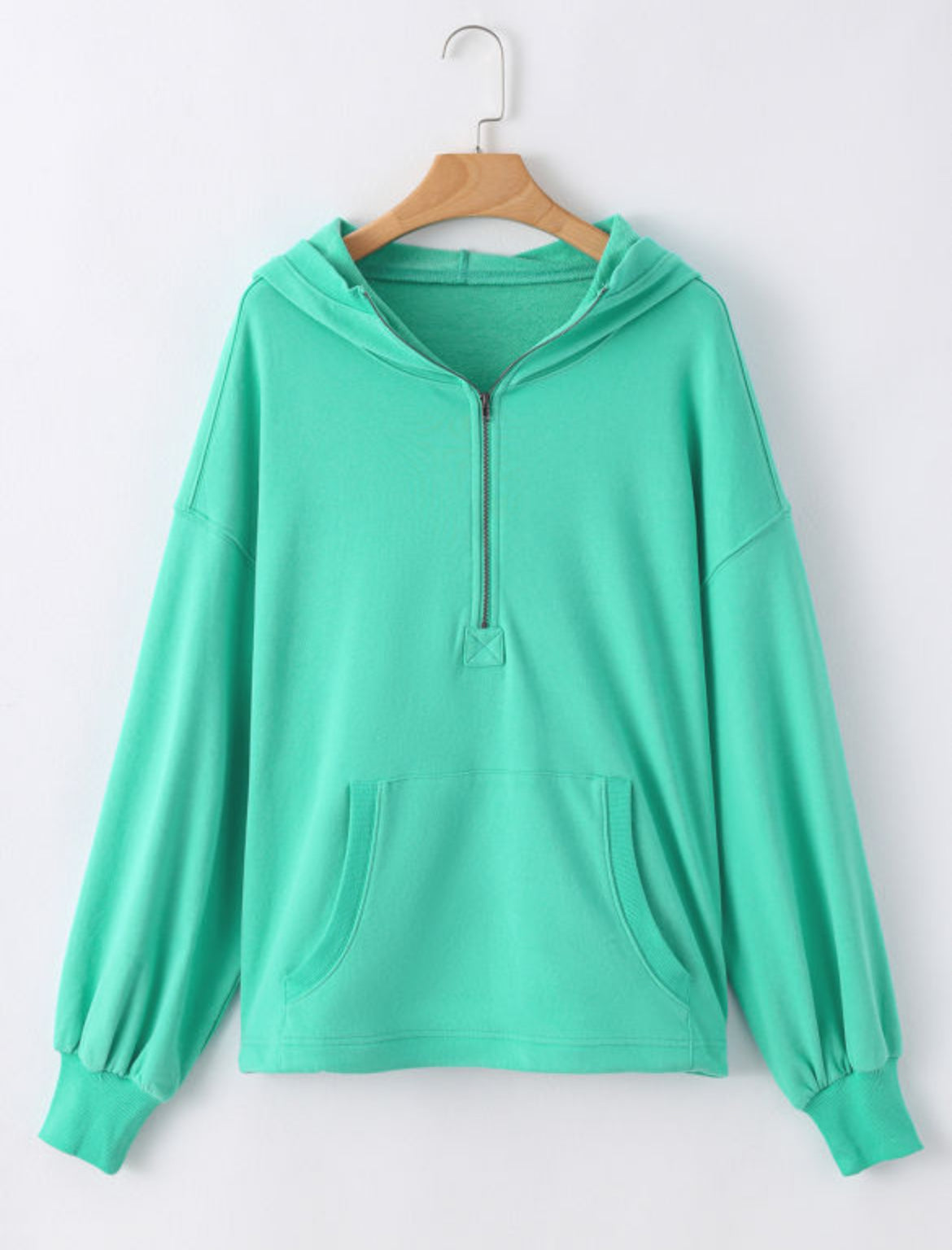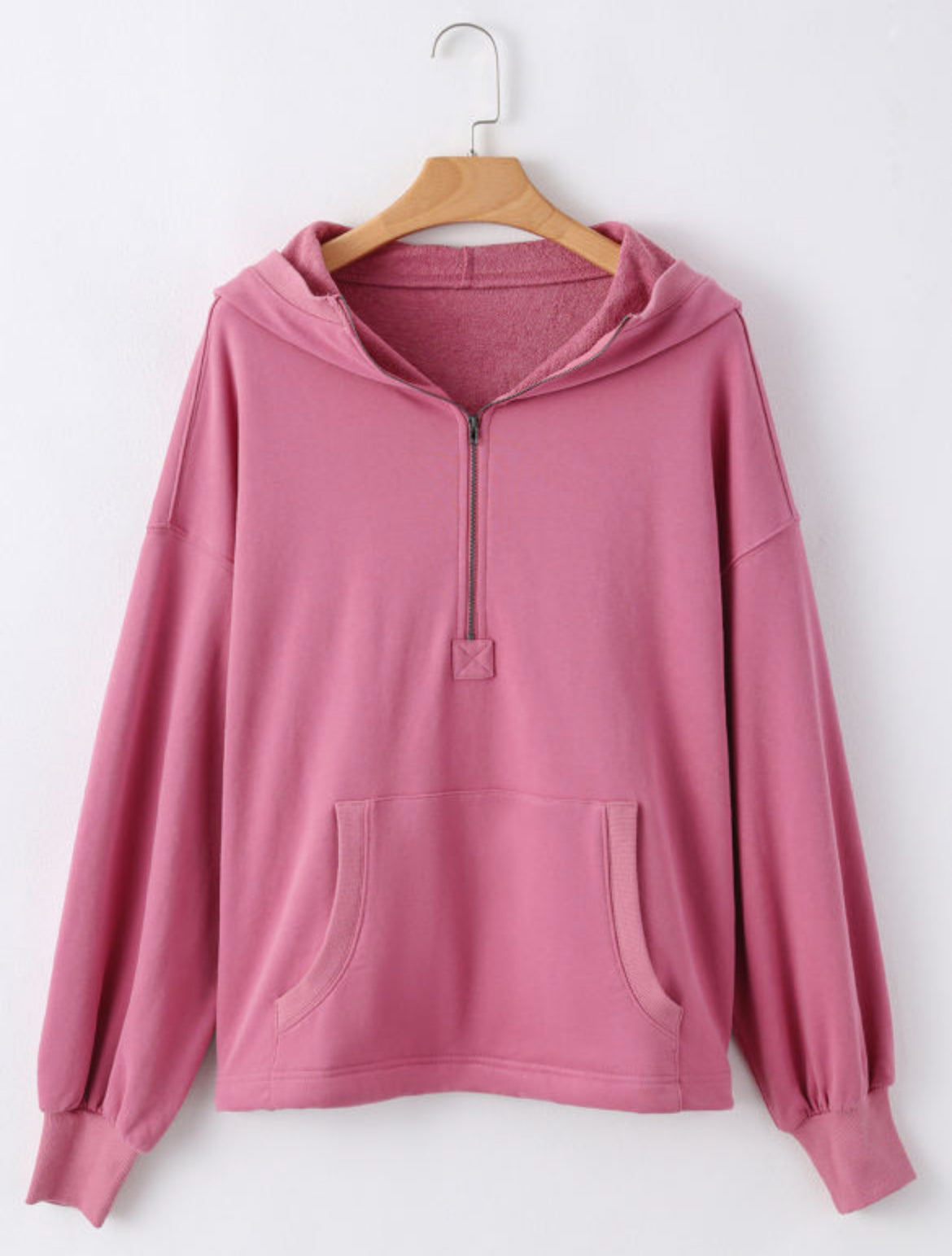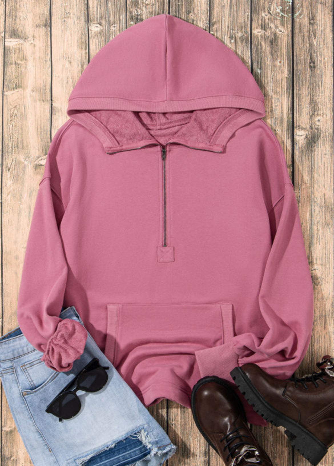 Always a hoodie fan here! This Halfzip hoodie is a relaxed style that is extra comfy without being overly heavy. It features a Halfzip front, kangaroo pocket, and is relaxed fit with bottom hem bungee toggle so you can get the perfect fit for you!