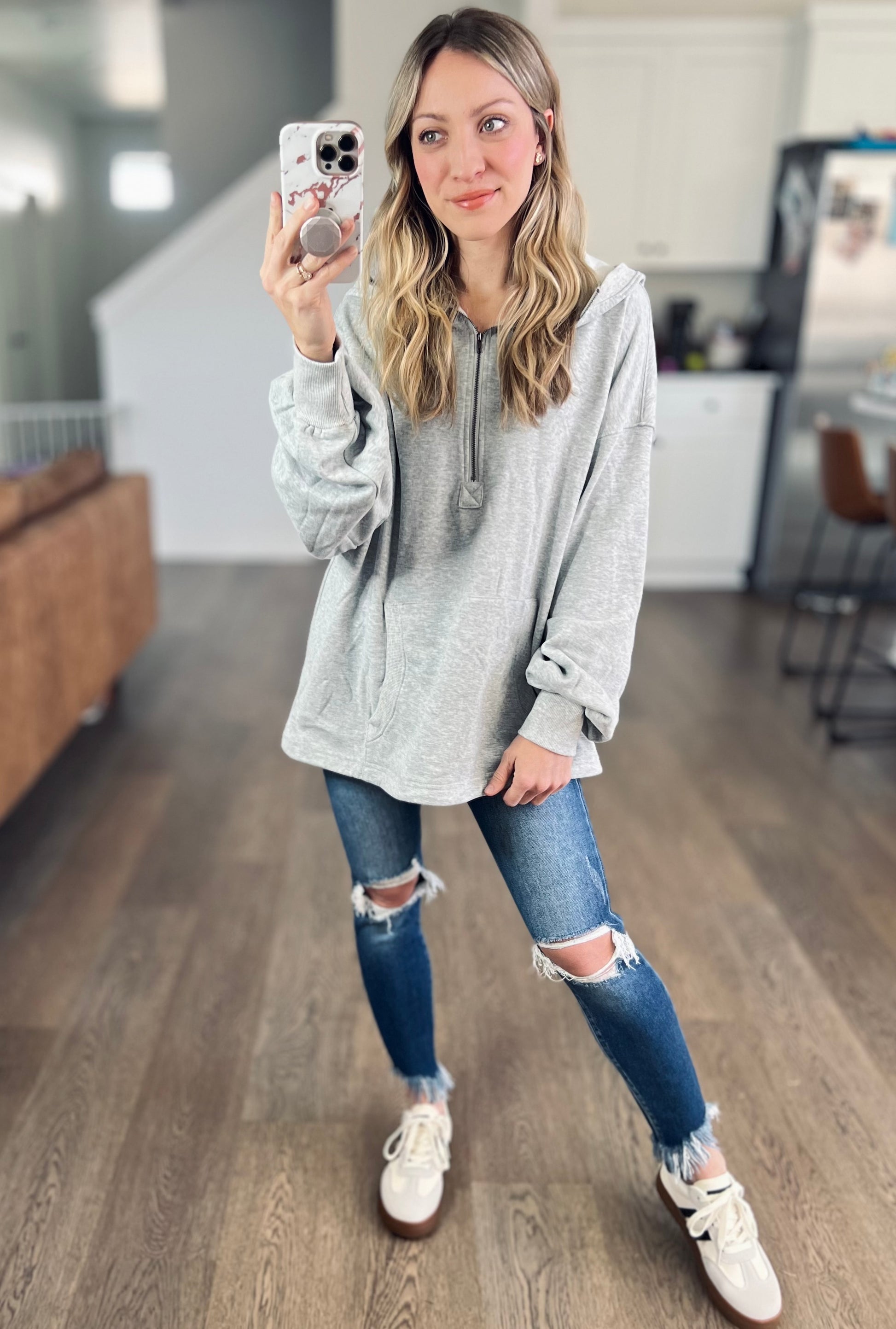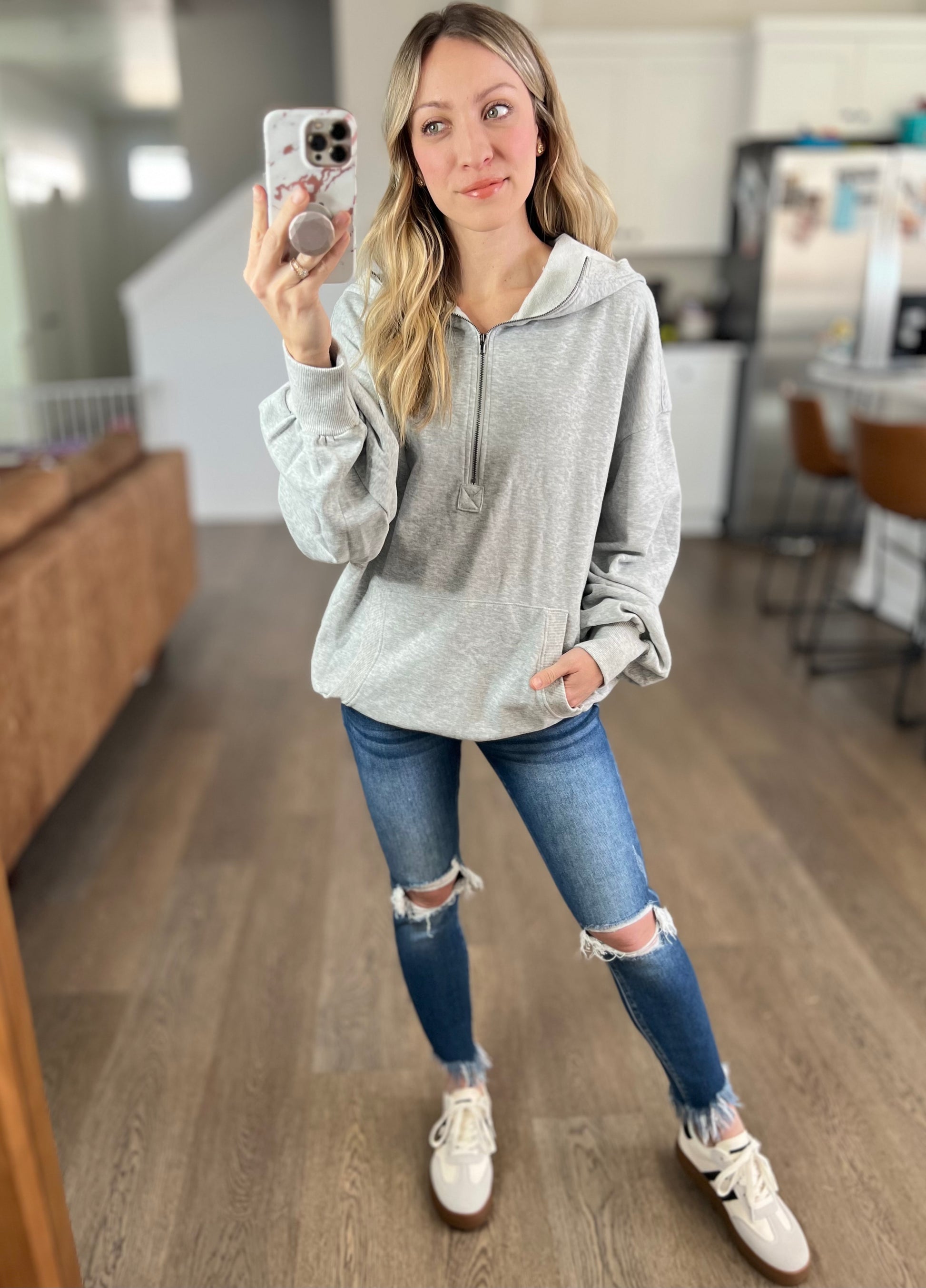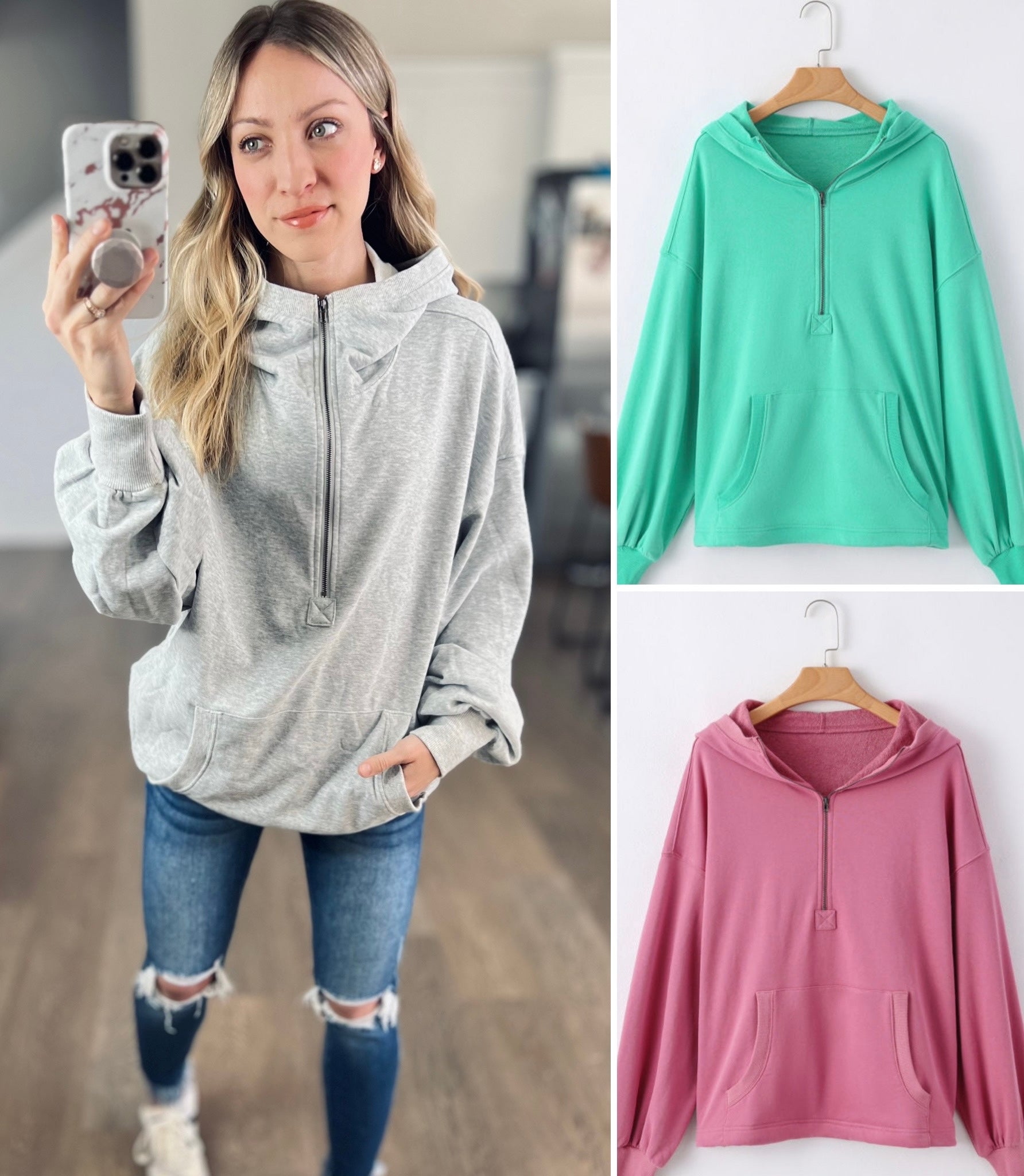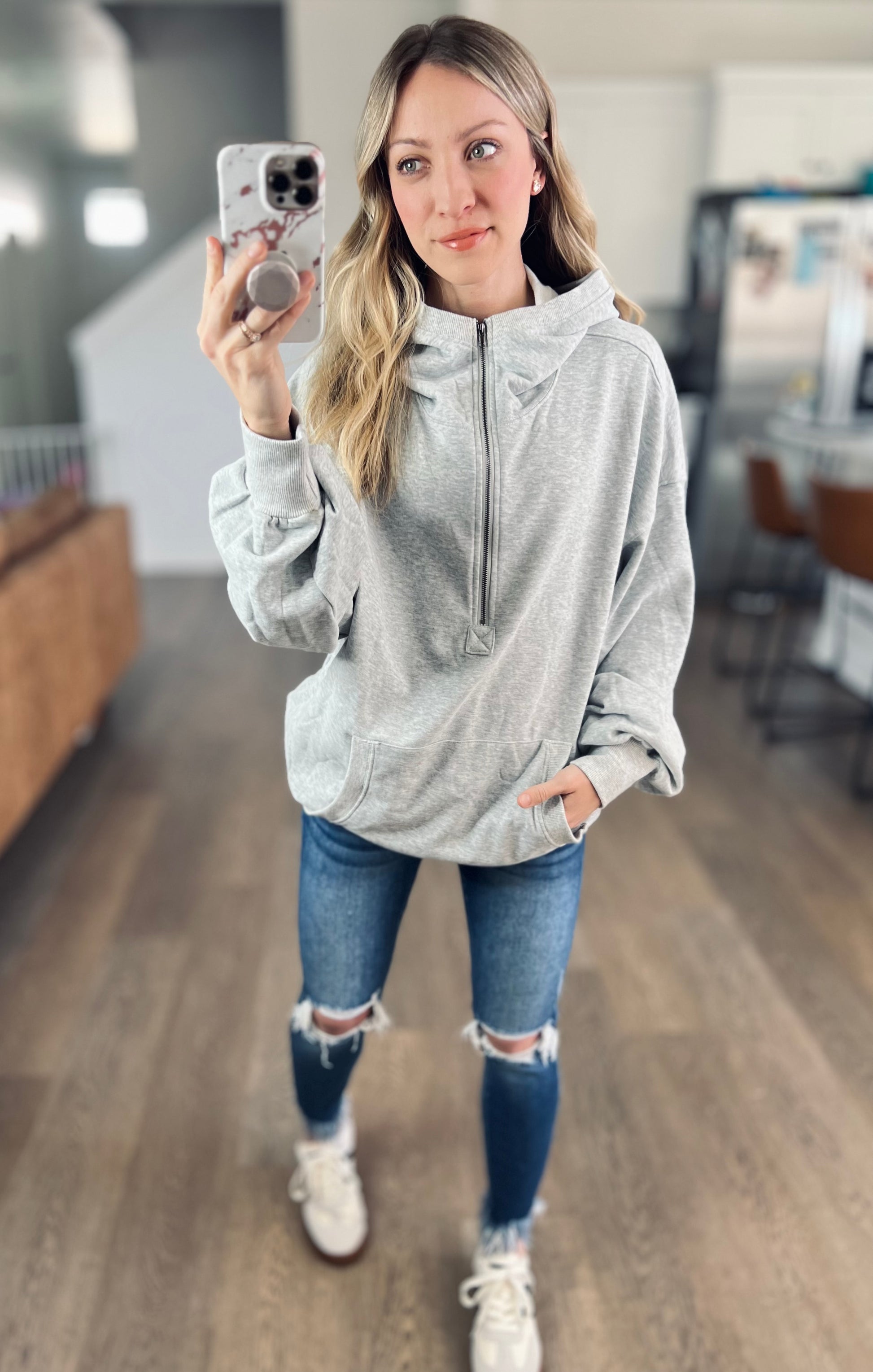 Always a hoodie fan here! This Halfzip hoodie is a relaxed style that is extra comfy without being overly heavy. It features a Halfzip front, kangaroo pocket, and is relaxed fit with bottom hem bungee toggle so you can get the perfect fit for you!