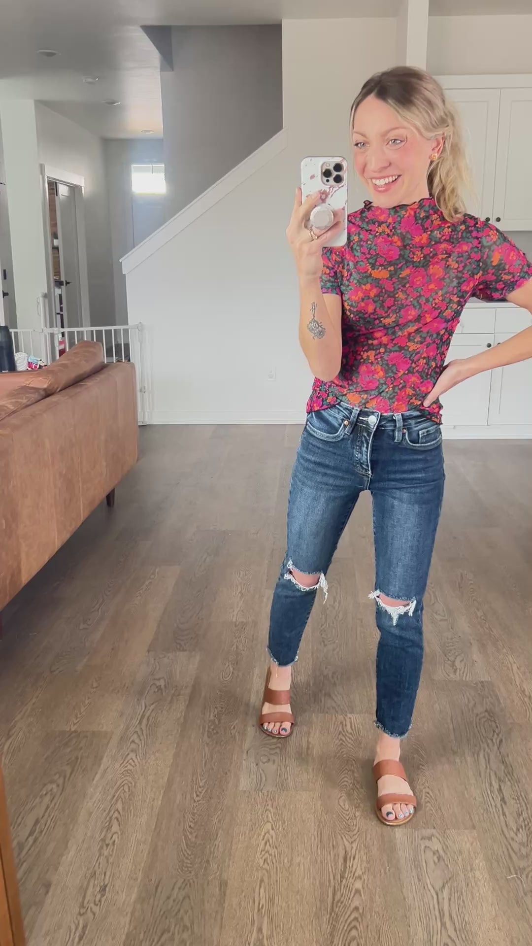 This is a mesh top, sheer by design but I didn’t need an undershirt with my nude bra.