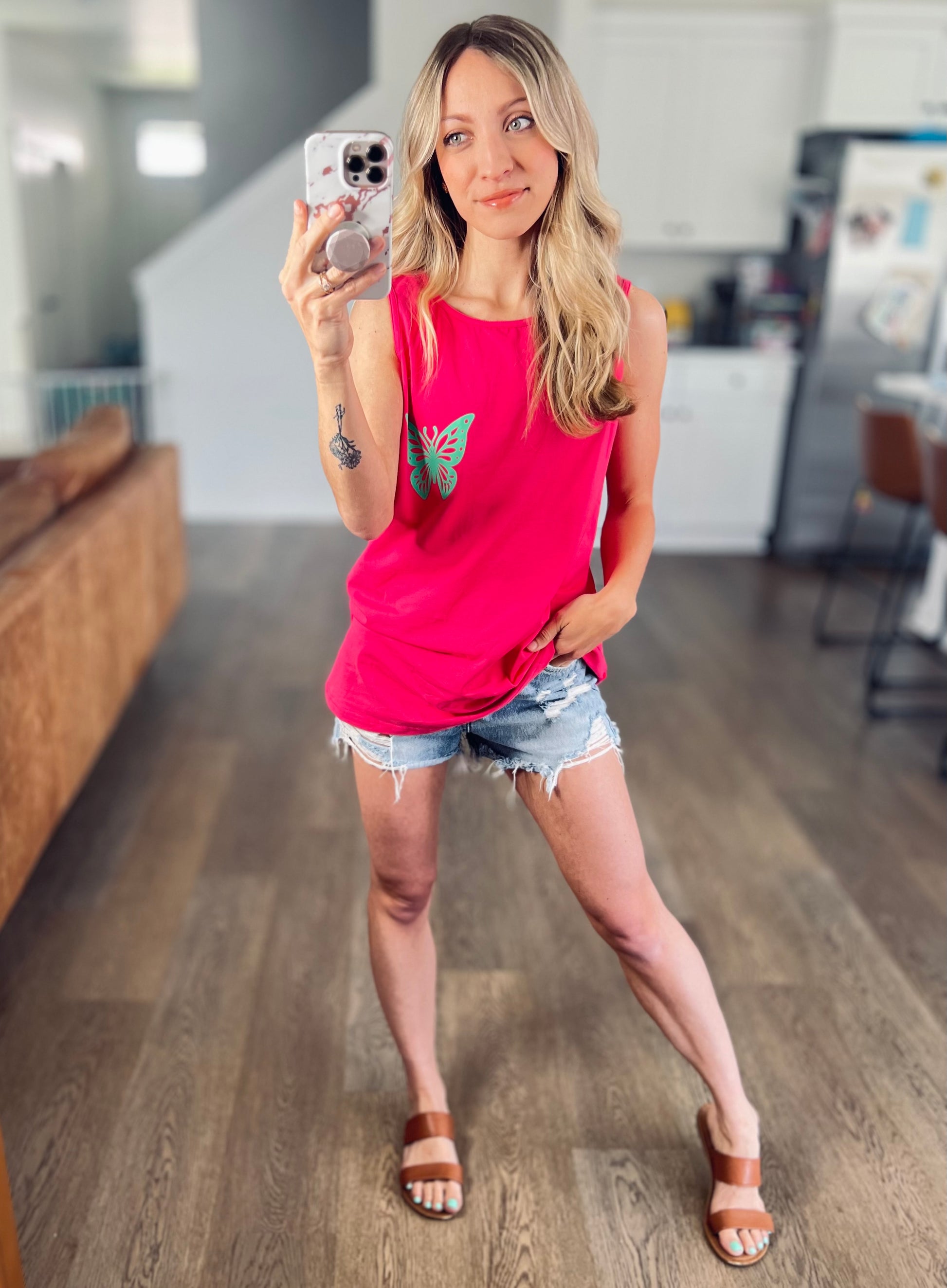 Classic tank. More of a unisex fit; you can size down if you don’t want it extra roomy.