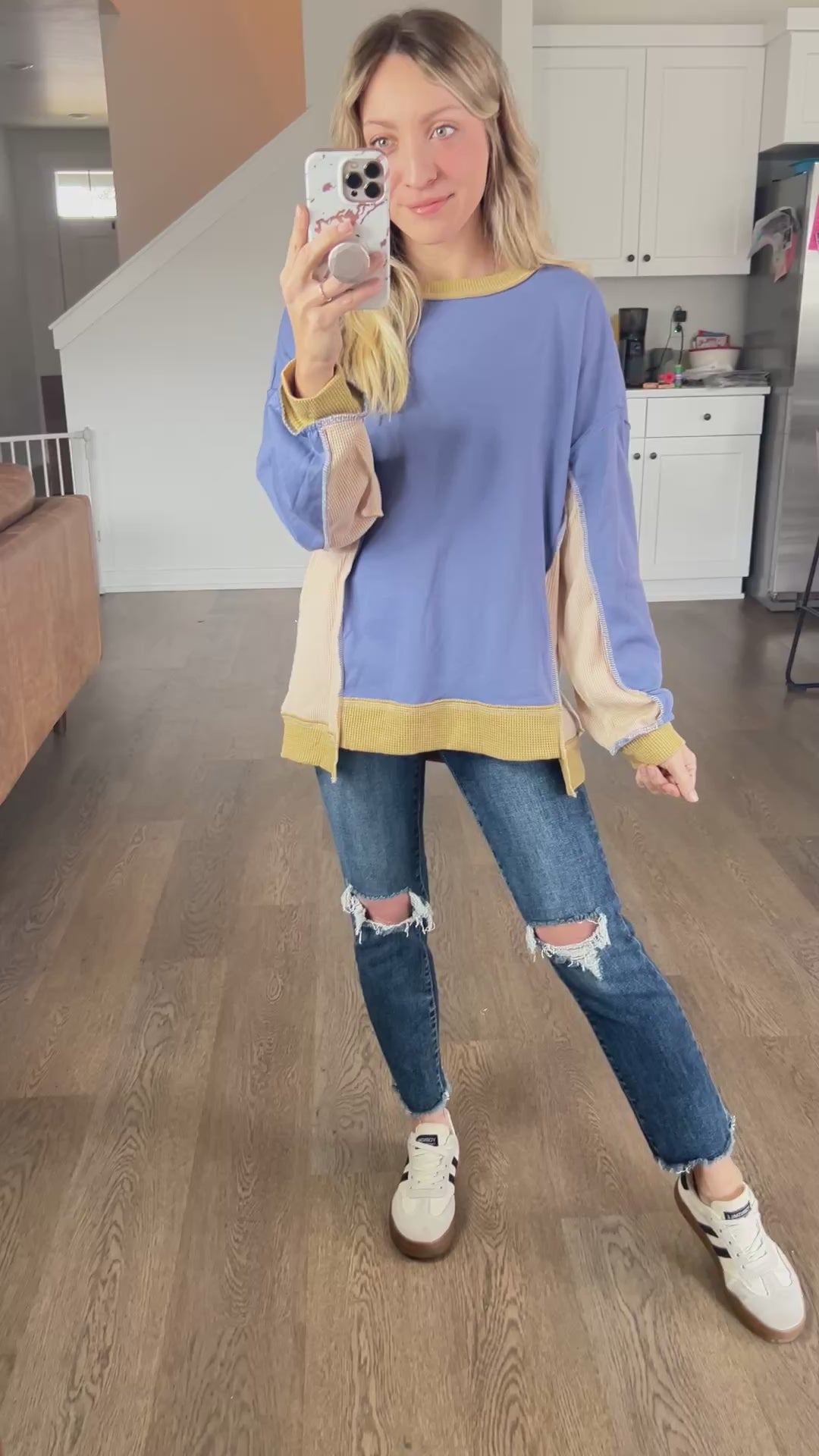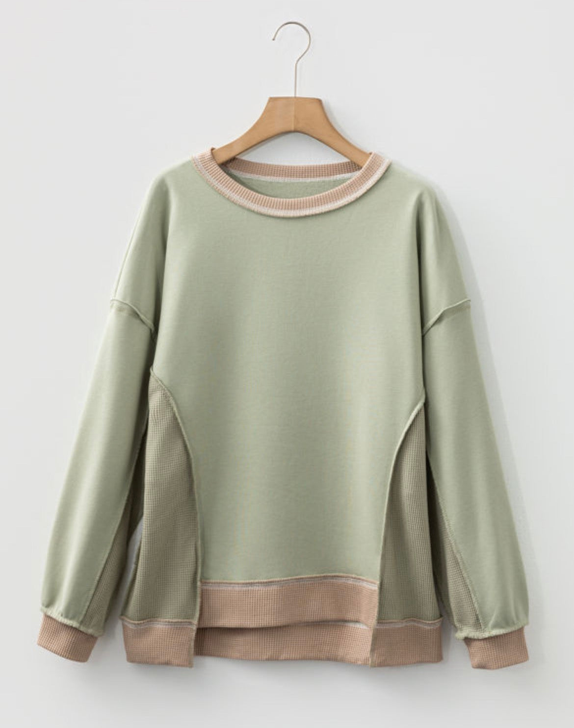 I love the seamlines and the different materials used. Just a cute change for a pullover!